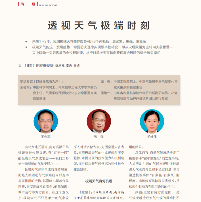 新华社《瞭望》当北方地区暴雨、南方高温干旱频繁突破传统灾害,当“百年一遇”的极端天气渐成常态……我们正身处一场深刻的气候变局之中。极端天气并非单纯的自然现象,而是人类活动与气候系统内部变率共同作用的产物,其影响也超越气象范畴,深度渗透粮食安全、能源保供、城市运行等方方面面。在这个意义上,极端天气不只是单一的气象议题,更是对国家治理体系和治理能力的系统考验。面对极端天气未来可能“更频繁、更强、更复杂”的挑战,本刊记者深入对话多位专家,力图穿透灾害表象,厘清极端天气的生成逻辑与演变趋势,审视当前...