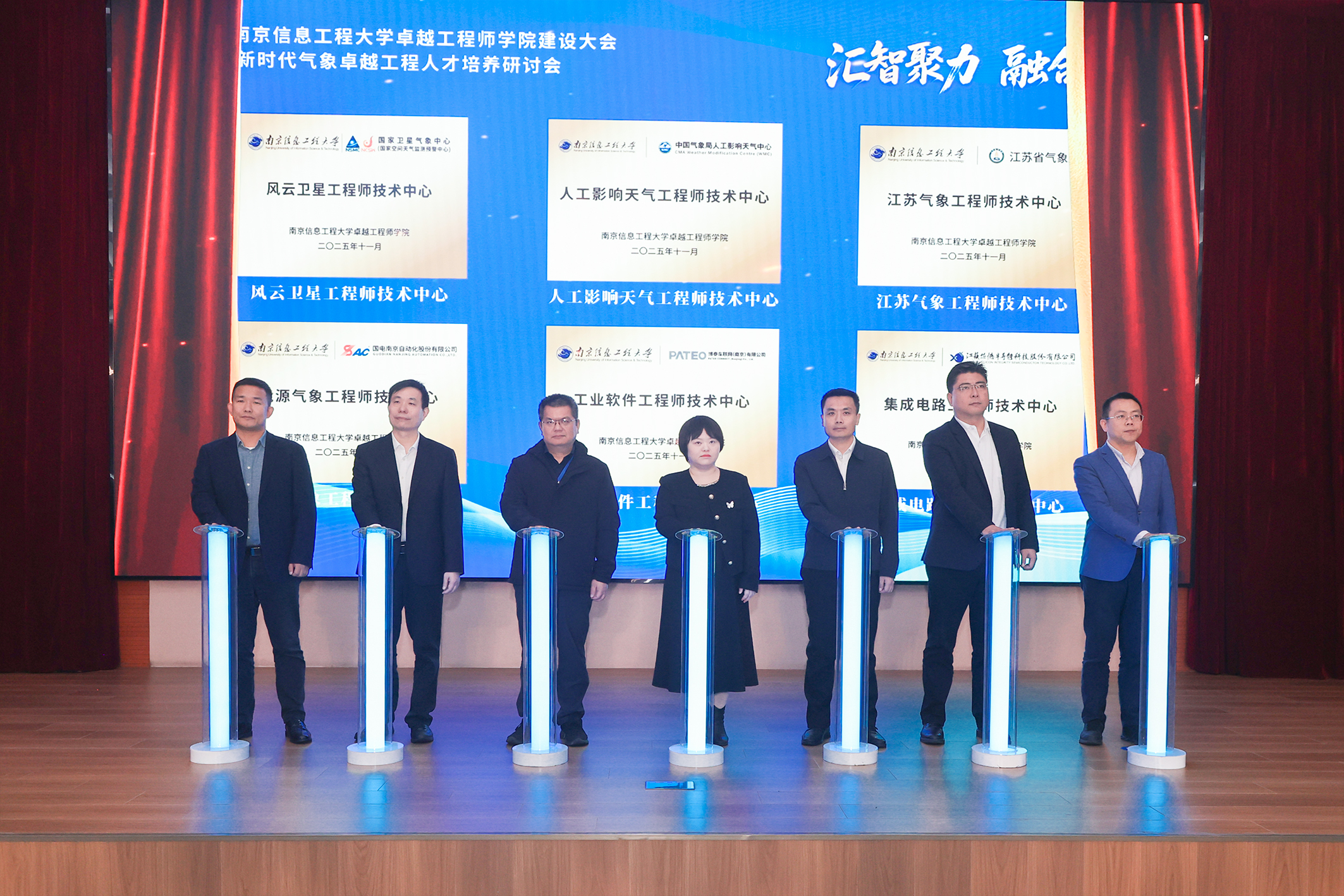 在工程师技术中心揭牌环节,风云卫星工程师技术中心、人工影响天气工程师技术中心、江苏气象工程师技术中心等行业类平台,以及能源气象工程师技术中心、工业软件工程师技术中心、集成电路工程师技术中心等企业类平台集中亮相,标志着校企协同育人迈入实体化运行新阶段。