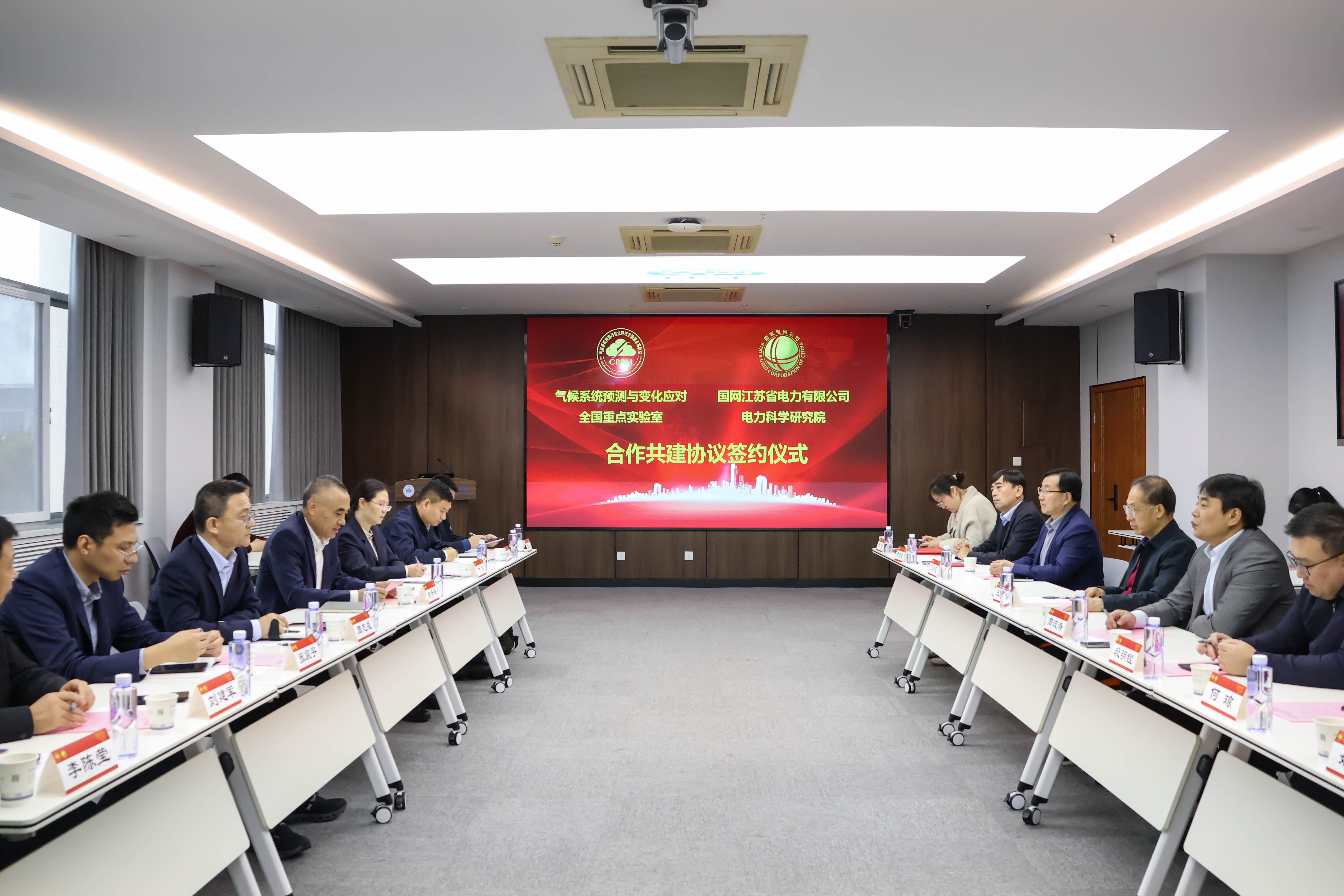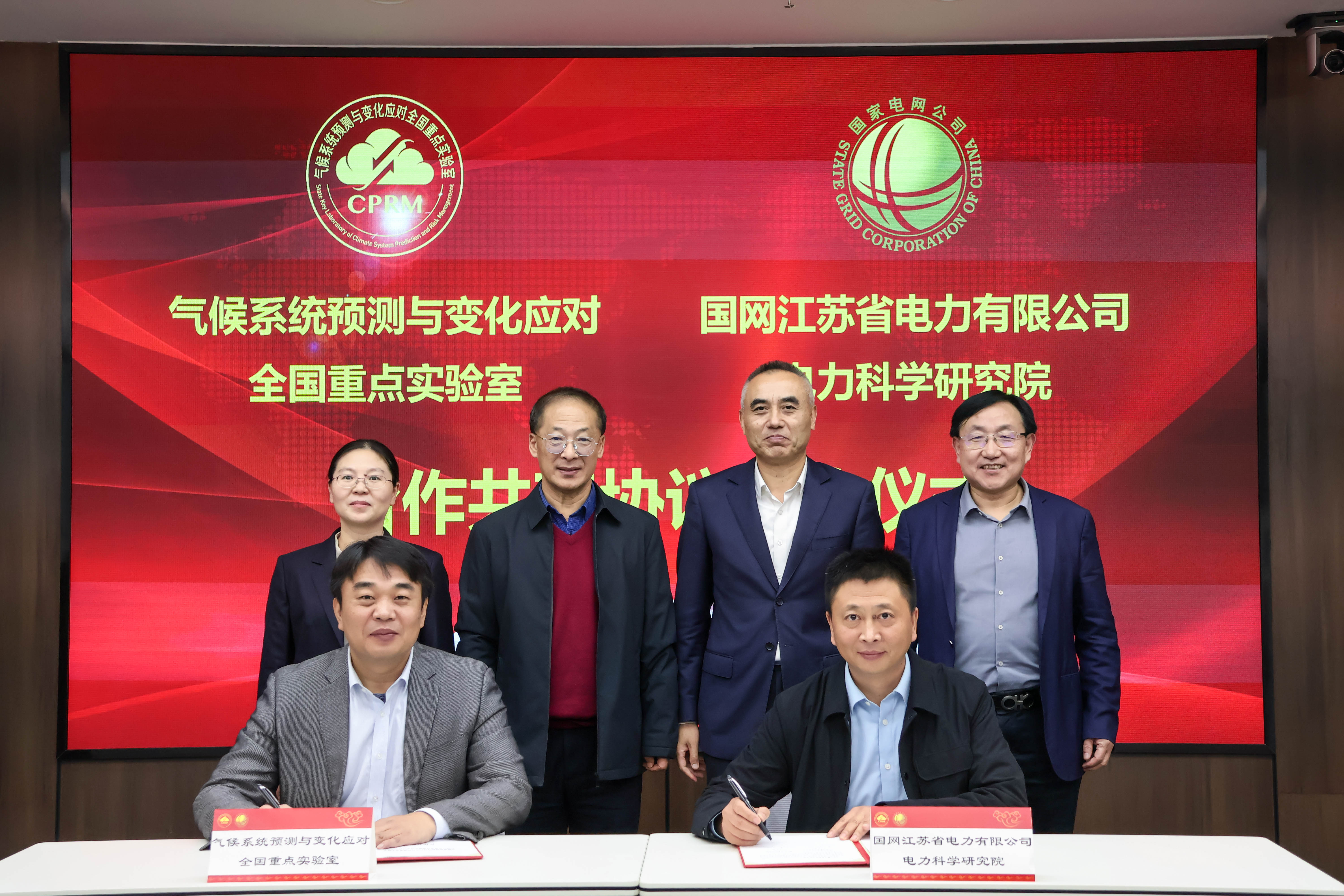 11月7日,气候系统预测与变化应对全国重点实验室(以下简称“全国重点实验室”)与国网江苏省电力有限公司电力科学研究院(以下简称“国网江苏电科院”)举行合作共建签约仪式。国网江苏电科院院长黄奇峰、副院长周志成,国网江苏省电力有限公司设备管理部技术处处长付慧,全国重点实验室主任王会军院士,我校党委副书记闵锦忠,实验室副主任周波涛、尹志聪等双方领导和专家代表共同出席活动,活动由尹志聪主持。
