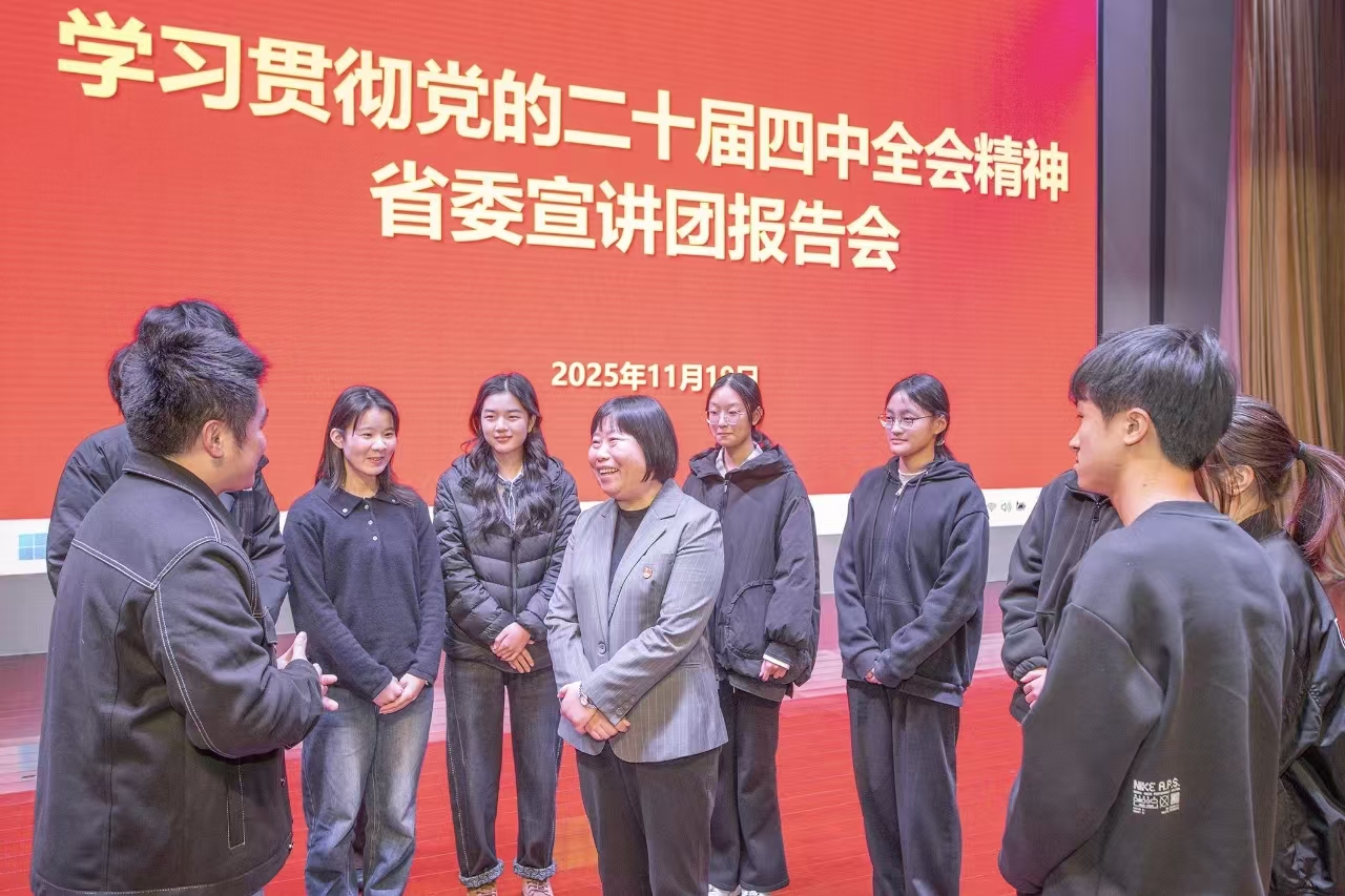 报告会后,张加华与学校思政课教师、学生代表进行了现场交流,围绕将全会精神融入思政课程、强化青年使命担当等问题进行精准指导,为我校深化全会精神学习贯彻提供了有力支撑。
