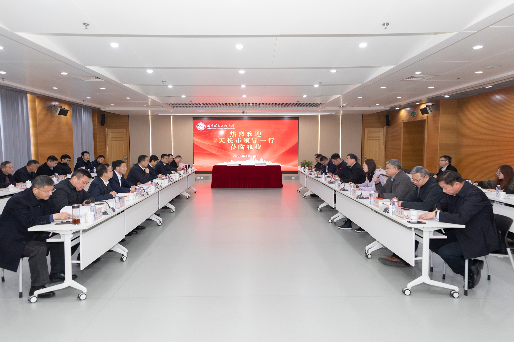陈海山对张秀山、阚绪瑞一行来校调研表示欢迎。他表示,南信大与天长市合作基础坚实,取得一定成效,此次交流,既是对双方前期合作成果的肯定,更是对未来携手共进的强力推动。期待双方开启互利共赢的新篇章,学校将充分发挥学科、人才和科研优势,精准对接天长产业发展需求,推动更多创新成果落地转化,让校地合作结出更加丰硕的成果。