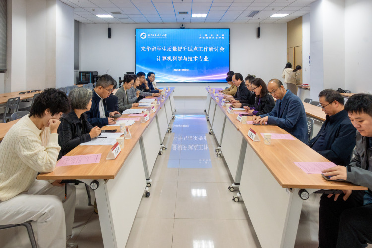 10月19日下午,我校于临江楼A102召开来华留学生质量提升试点工作(计算机科学与技术专业)研讨会。南京邮电大学教务处处长兼教师教学发展中心主任、教授、江苏省教学名师、江苏高校外国留学生英文授课省级精品课程《数据结构》负责人王海艳,江苏大学副教授、江苏省省级英文授课精品课程《操作系统》负责人牛德姣,东南大学副教授、博导、教育部计算机教指委和教师发展基金会“高校计算机专业优秀教师奖励计划”获奖教师、首届教育部-华为“智能基座”全国优秀教师董恺,以及教务处、计算机学院、国际教育学院相关负责人等十余位校内专家出席会议。会议由计算机学院副院长田伟主持。