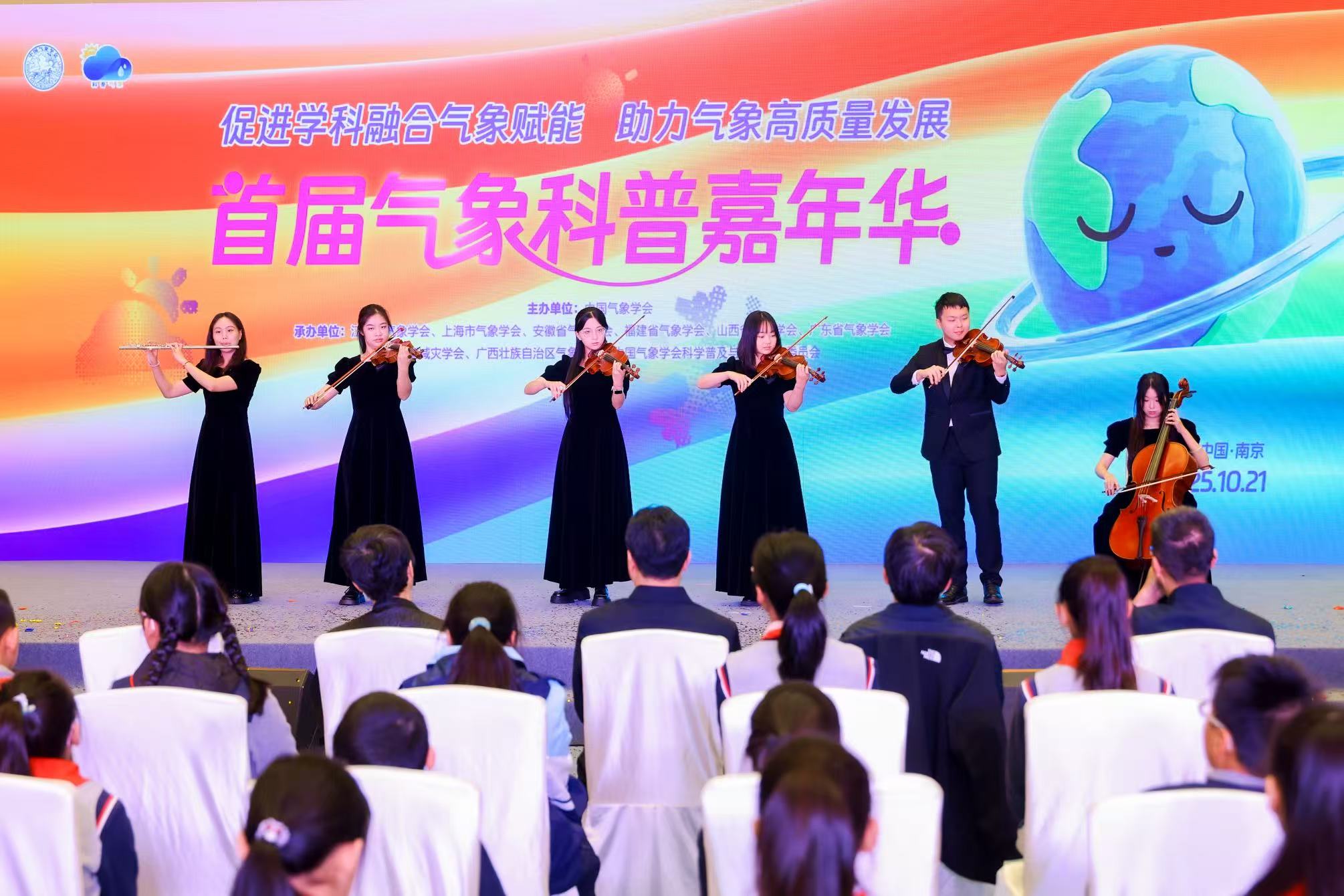 在全国气象科普节目表演秀中,我校交响乐团还献上了开场节目表演,学校师生以及南信大高新实小的同学们在互动展示区进行了参观,充分感受气象科学的魅力。