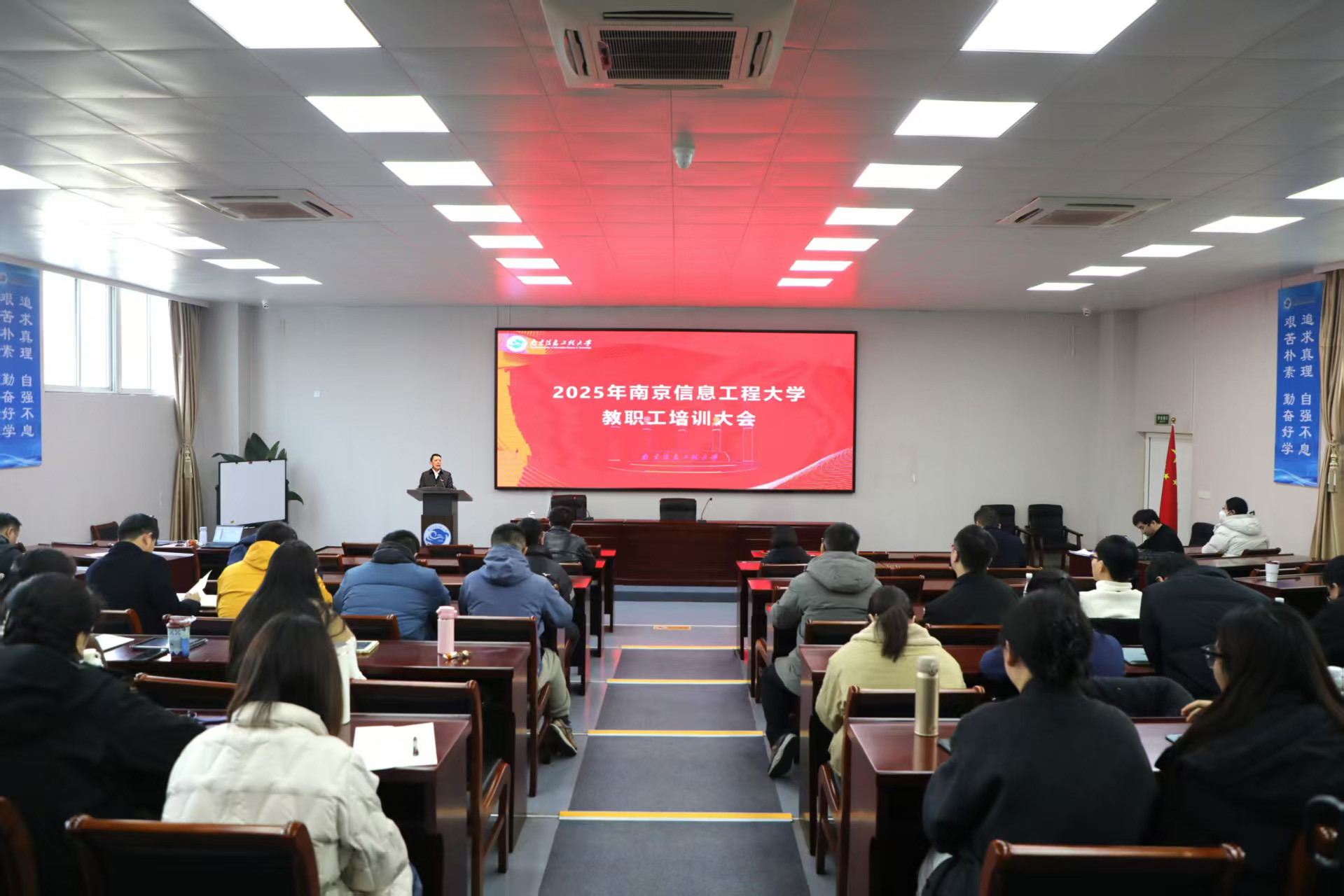 金自康在开班仪式上对全体新教师的加入表示祝贺和欢迎。他指出,学校自1960年建校以来,始终以气象学科为立校之本,并逐步形成“大气象、跨学科、国际化、创新潮”的办学特色。当前,学校正处在“双一流”建设与高质量发展的关键时期,新教师的加入为学校注入了崭新活力。他希望大家尽快融入学校,完成从“旁观者”到“主人翁”、从“学习者”到“建设者”、从“个体贡献”到“团队协同”的角色转变,要深刻领会并自觉传承“艰苦朴素、勤奋好学、追求真理、自强不息”的校风,珍惜平台、爱校荣校。他寄语新教师,要坚定理想信念,落实立德树人根本任务,努力成为学生成长的引路人。同时,要立足教学科研本职,追求卓越、扎实工作,将个人成长与学校发展紧密结合,共同为谱写南信大新篇章贡献力量。