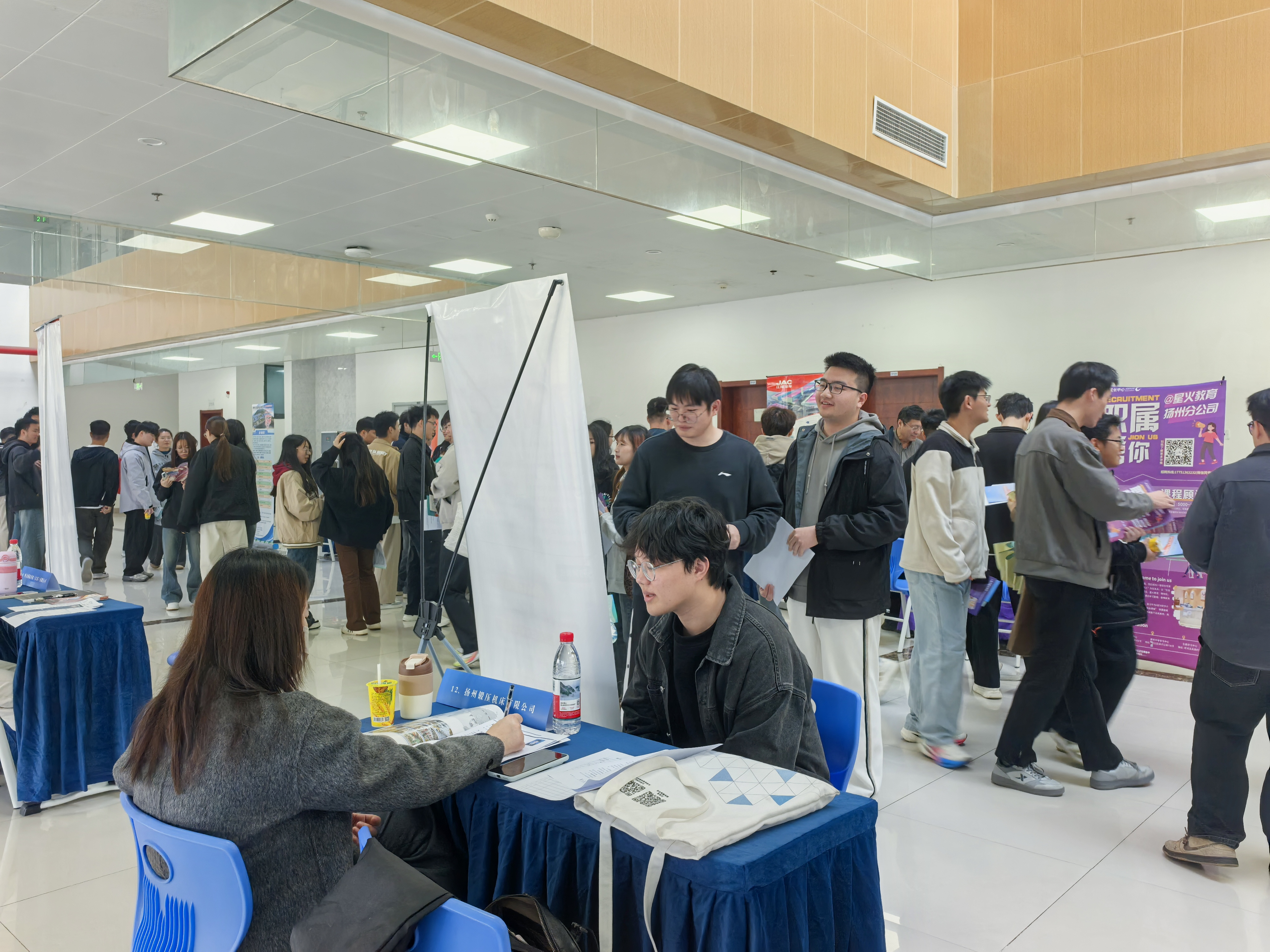 本次招聘会特色鲜明,企业岗位质量高、专业覆盖面广。汇聚17家扬州优质企业,涵盖医疗器械、电子科技、智能制造、新能源等多个领域,带来超300个就业岗位,精准匹配园区计算机、电气工程、财务管理、金融等专业毕业生,吸引园区500余名毕业生现场求职。此外,招聘现场还特设扬州非遗文化展示区,现场制作漆扇、品尝扬大网红酸奶等,让同学们近距离体验非遗文化,感受扬州魅力。