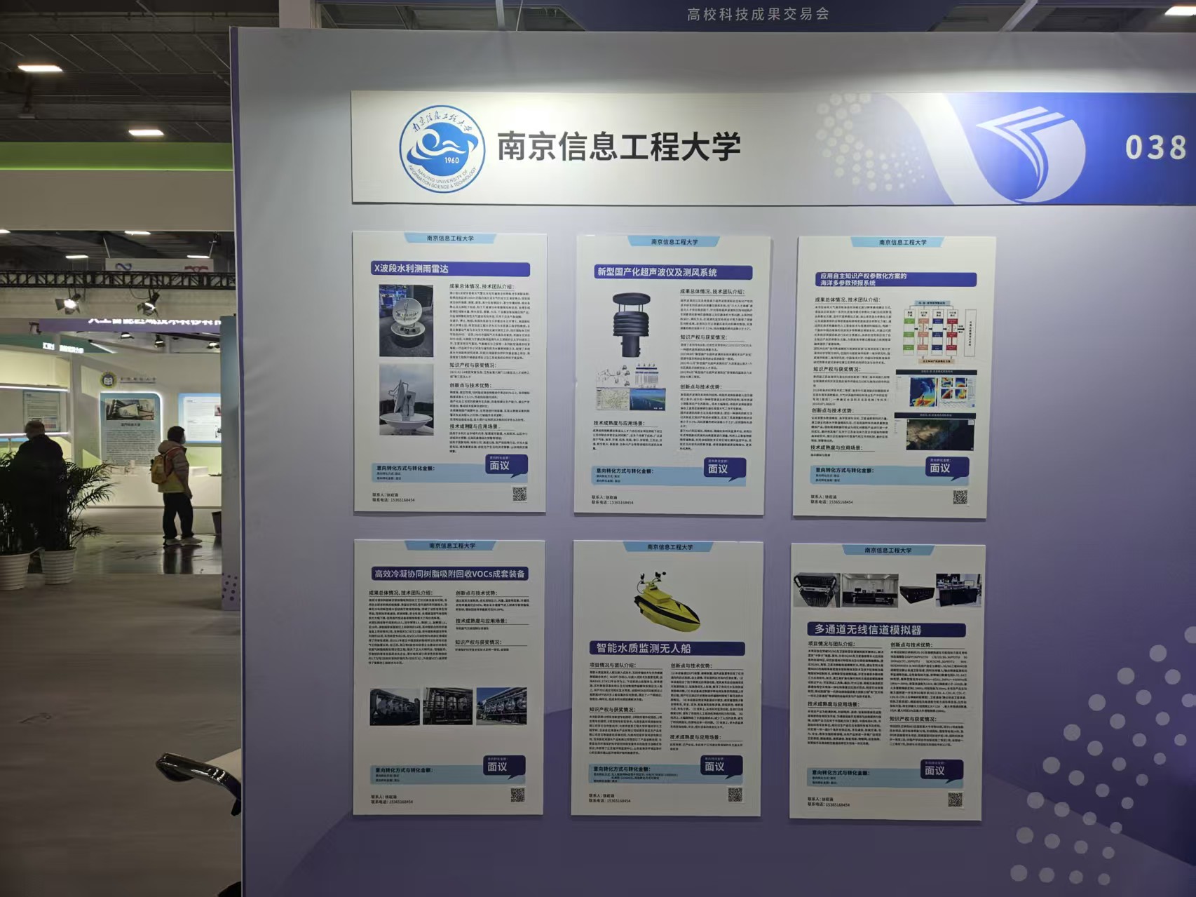 我校作为高校邀请代表出席、参展此次大会,现场亮相来自学校专家参与研发的各类优秀科技成果展品,得到了参展观众和领导的广泛关注和赞赏。“应用自主知识产权参数化方案的海洋多参数预报系统”采用大气海洋和海浪的多模式高分辨率离线耦合方式,通过同化技术和最新的人工智能技术与观测资料相结合,构建一个面向中国边缘海的风浪流多参数耦合预报系统,为提高海洋模式模拟能力和预报准确率提供了重要保障;“X波段水利测雨雷达”采用双偏振全相参脉冲多普勒体制,能够连续监测100km范围内强对流天气的发生及演变情况,为监测预警危险性天气提供有效手段,可用于应急气象保障;“高效冷凝协同树脂吸附回收VOCs成套装备”利用超高交联树脂吸附脱附技术与一体化装备,突破了传统活性炭吸附技术的重大工程应用瓶颈,具有不受废气湿度的影响、脱附再生容易、树脂机械强度高等优势,形成了对高浓度VOCs吸附处理的特色集成技术与装备,实现了树脂吸附法在有机废气治理与资源化工程中的广泛应用。