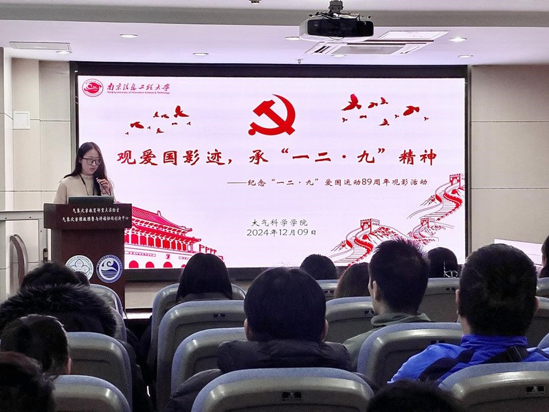 为纪念“一二·九”学生爱国运动89周年,引导青年学生铭记历史,弘扬爱国主义精神,厚植家国情怀,坚定理想信念,大气院于2024年12月9日晚,在气象楼423开展纪念“一二·九”学生爱国运动主题活动,学院60余名团学骨干参与此次活动。