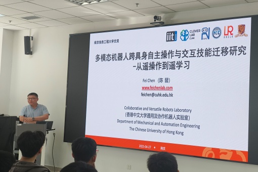 4月27日上午,自动化学院·自慧讲堂(第4期)于临江楼A103报告厅举办。应自动化学院邀请,香港中文大学机械与自动化工程系助理教授、通用及协作机器人实验室主任、IEEE Senior Member陈翡博士为师生带来了一场题为“多模态数据驱动的人机系统中跨具身自主操作与交互技能迁移研究”的学术报告。本次报告由自动化学院葛泉波教授主持。