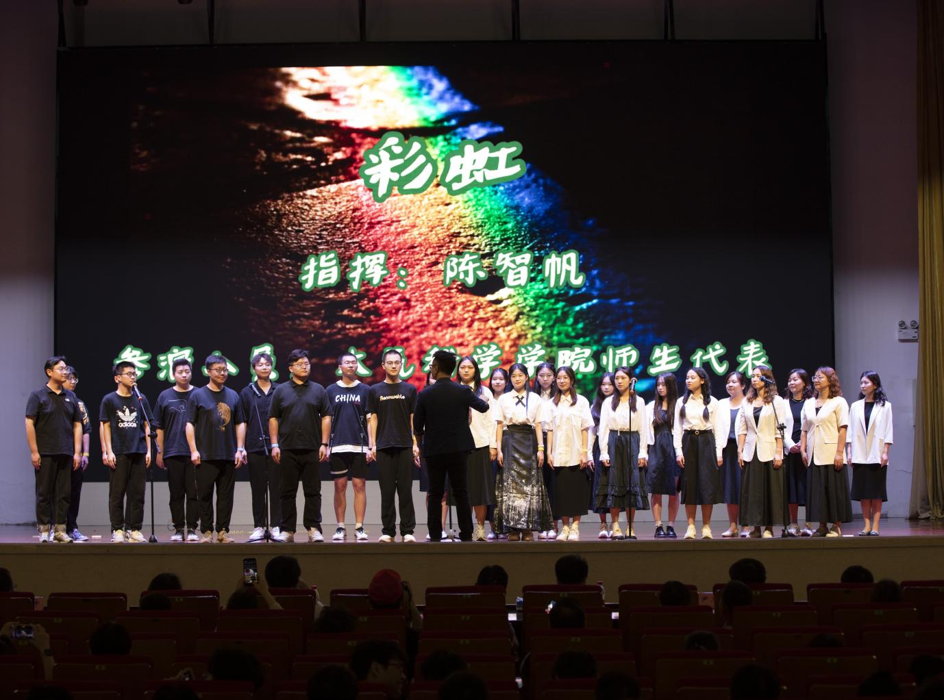 毕业仪式第二环节,精彩演出轮番登场。舞蹈《夏日童话》洋溢着大气院青年的蓬勃朝气;乐器歌曲串烧《青春巡礼》唤醒校园美好回忆;毕业抒怀《逐梦苍穹,气贯长虹》深情诉说毕业生们对母校的眷恋与对气象事业的憧憬;全体辅导员带来的手偶剧《指尖奇遇记》将现场气氛推向顶点。最后,仪式在大合唱《彩虹》中圆满落幕,歌声传递着大家对青春、母校、同窗的深情,也寄托着对未来的美好期许。