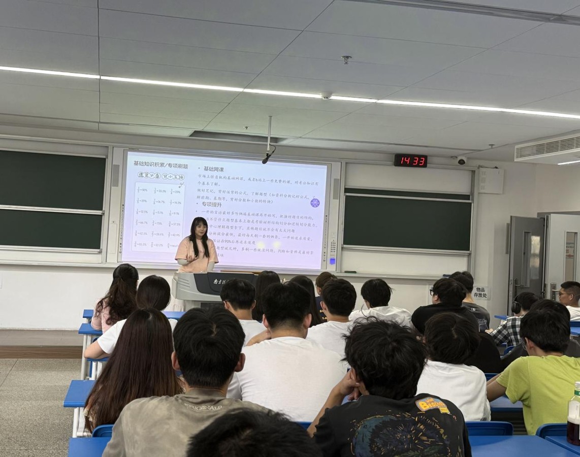 考公经验分享环节,考取广东省选调区级组织部的黄腾杰介绍了选调生报考条件与竞争态势,强调夯实政治素养和日常关注时政的重要性,提醒同学们面试时要围绕基层工作思路。任紫萱分享了连云港市选调生的选岗技巧,她建议同学们在报名时,要综合考虑地域、岗位和自身优势,同时,她还分享了行测“分阶段突破”和申论拆解范文的备考策略。考取盐城市选调生的陈敬予提醒大家在备考期要及时调整心态,他建议同学们可以通过制定小目标和复盘保持热情,积累时政素材。考入徐州市公安局的程海桐指出公安岗位需加试专业知识,要强化应用能力,提前进行体能储备。