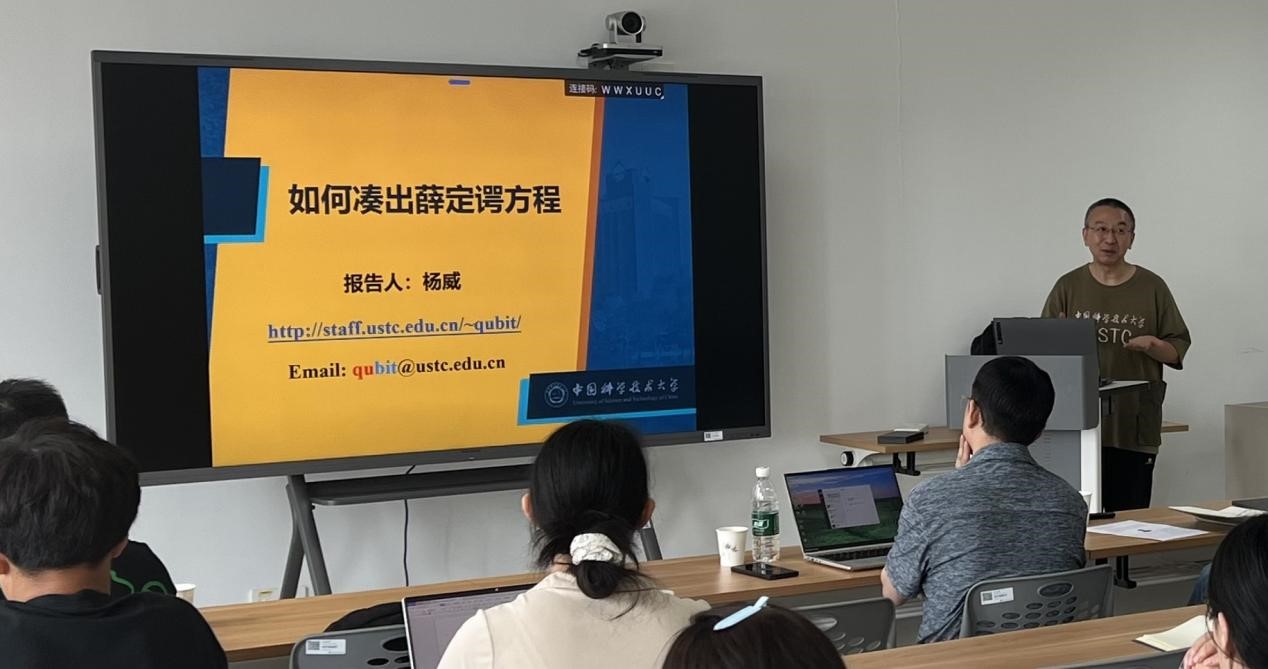 7月13日下午,软件学院在临江楼A908室举办第28期“齐聚讲堂”,特邀中国科学技术大学杨威教授主讲,主讲题目为“如何凑出薛定谔方程”。余文斌副教授、王海彬副教授和软件学院研究生代表参加了此次报告会。报告会由软件学院院长助理刘文杰教授主持。