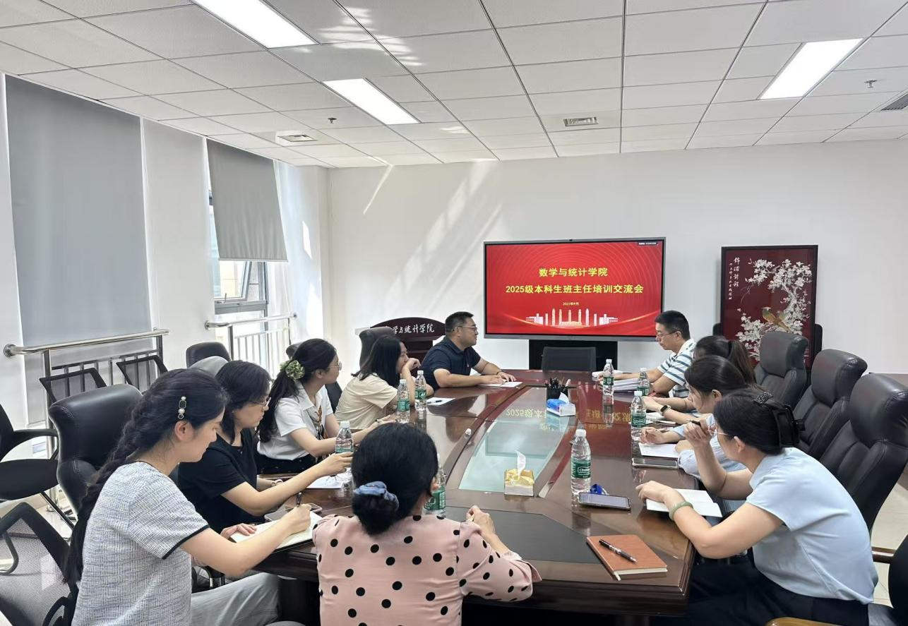 9月3日,数学与统计学院在藕舫楼629召开2025级本科生班主任工作培训交流会,旨在明确新生培养工作重点、统一育人思路,为2025级本科生成长成才奠定扎实根基。学院党委副书记、副院长邱章强,学办副主任、2025级本科生辅导员丁杰,以及2025级全体9名新生班主任共同参会。
