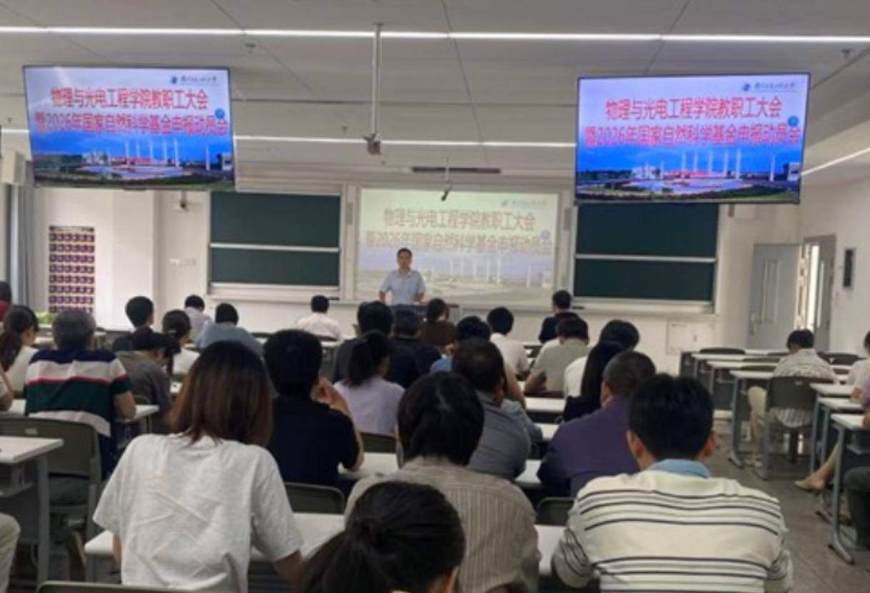 为推进学院各项工作平稳、有序、高效开展,9月10日下午,物理与光电工程学院在明德楼S305会议室召开2025年秋季学期首次全体教职工大会暨2026年国家自然科学基金申报动员会。院领导班子成员、全院教职工出席会议,会议由院党委副书记(主持工作)徐志勇主持。