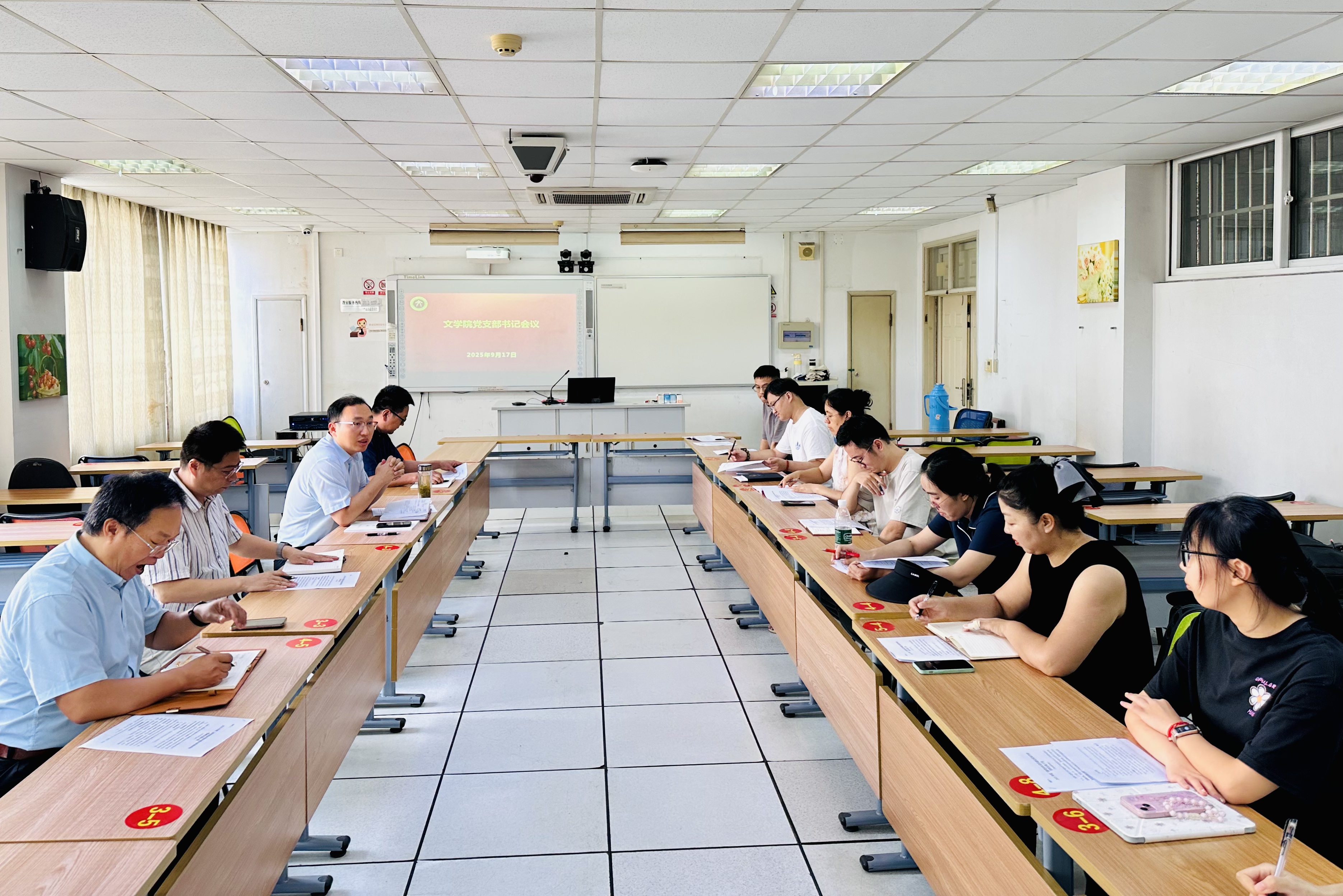 9月18日,文学院在文C306会议室召开新学期党支部书记工作例会,学院全体党委委员、各党支部书记参会,学院党委书记郭雨主持会议。