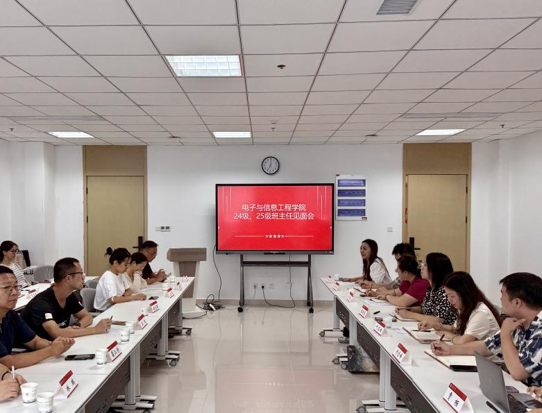 为进一步强化班主任队伍建设、凝聚育人合力,9月17日,电信院在临江楼818会议室召开新学期班主任工作会议暨大一大二年级班主任见面会。电信院党委书记张明菊,院党委副书记、副院长叶玉娣,2024级、2025级全体班主任、辅导员参加会议,会议由学办副主任黄开洁主持。