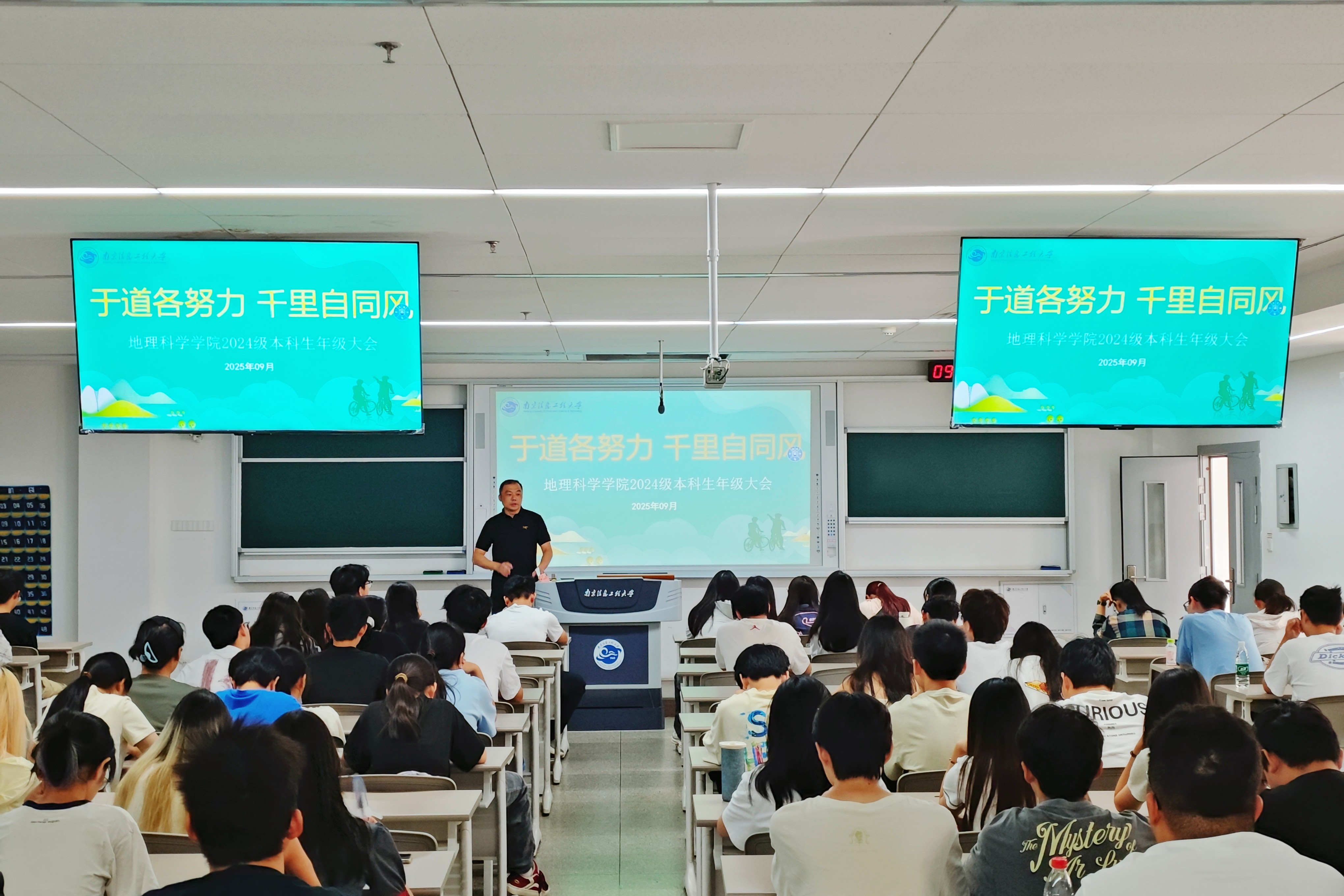 随着专业分流、转专业工作的结束,为帮助同学们稳定思想、树立信心、明确目标,以更加昂扬饱满的精神状态迎接接下来的学习生活,近日,地科院在明德楼s201教室召开了2024级本科生年级大会。学院党委副书记、副院长王平,2024级辅导员刘国东及全体2024级学生共同参加了此次会议。