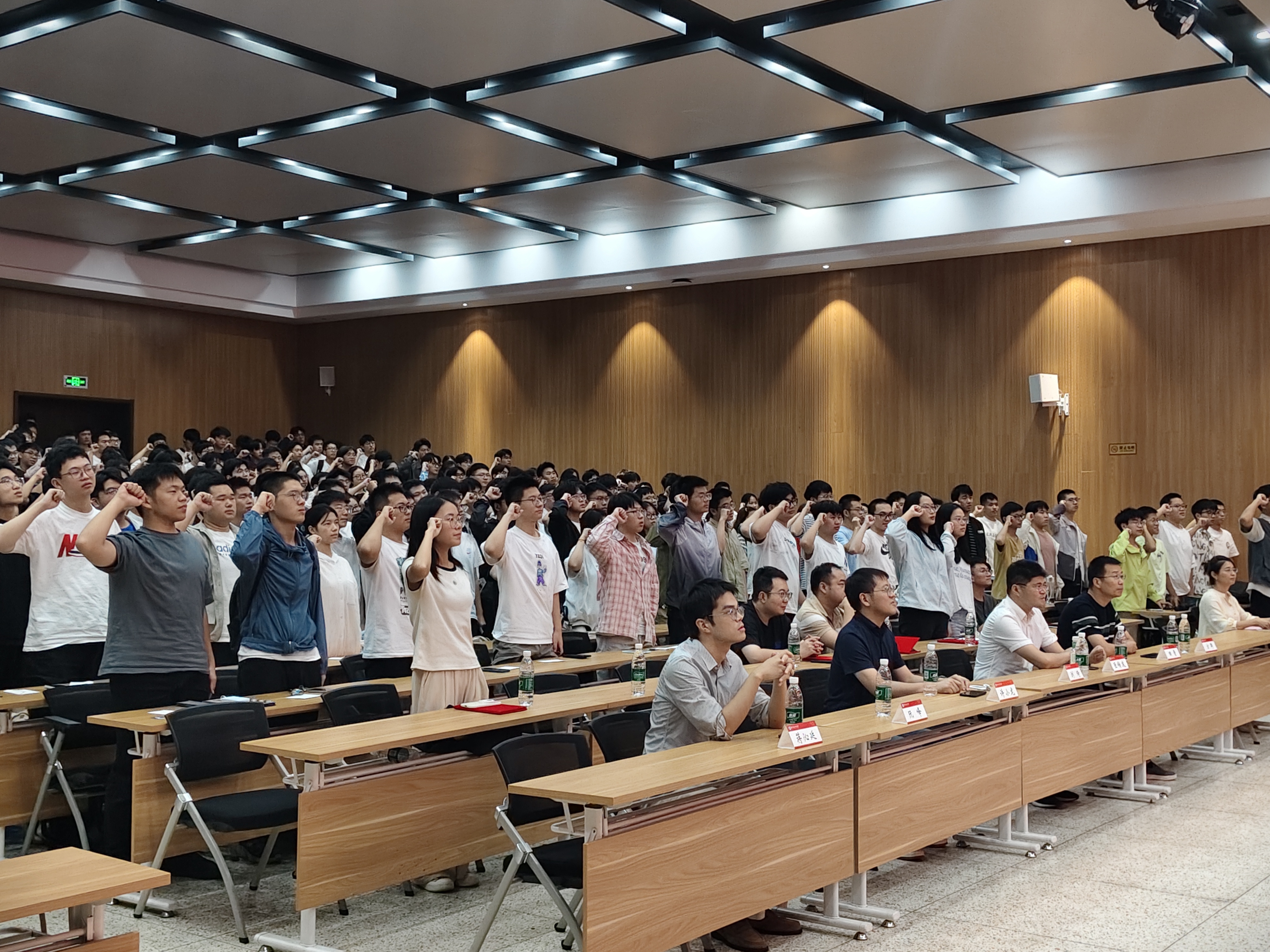 最后,在副班主任代表、院学生会主席团成员、2023级软工3班钱宇成同学的领誓下,全体新生庄严宣誓,共同呐喊出铮铮青春誓言。
