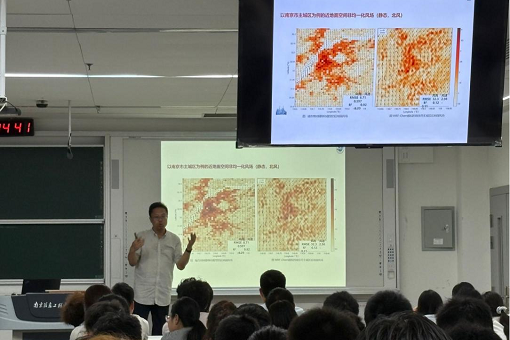 刘振鑫以“数值天气预报是如何做出来的”为题,用通俗易懂、幽默风趣的语言,将数据采集到模型运算的复杂流程娓娓道来,瞬间抓住了同学们的注意力。随后,他按时间脉络梳理关键节点:从早期人类对气象现象的懵懂观察,到地面天气图诞生为气象分析提供直观工具;从锋面、气旋和气团学说提出,成为理解天气系统演变的里程碑。在讲解天气预报理论和技术发展时,刘振鑫表示观测技术革新与数值模型进步带来的重大突破。进入现代阶段,他着重分析城市内部天气需考虑的城市结构、温度等因素;在天气集合预报阶段,又解释多源数据融合与概率预报如何降低不确定性,如取平均值等。