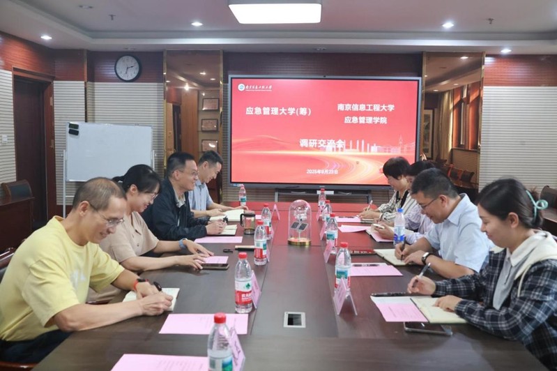 会议伊始,顾湘代表学院向应急管理大学(筹)一行的莅临表示热烈欢迎,并系统介绍了学院的发展概况与核心优势。她说,学院始终立足气象防灾减灾这一核心领域,现已构建起 “本科 - 硕士 - 博士”一体化的完整人才培养体系,形成了层次分明、衔接有序的育人格局。在专业设置上,学院开设安全工程、防灾减灾科学与工程、应急管理等核心专业,并创新性推出实验班与双学位项目,为学生提供多元化的成长路径,满足应急管理领域对复合型人才的需求,同时,她还分享了学院在人才培养、校企合作实践等方面的特色做法与显著成效。在人才培养方面,学院坚持理论与实践相结合,通过建立多个校外实习基地,为学生提供真实的应急管理场景实践机会,有效提升了学生的实际操作能力和问题解决能力。此外,学院还积极邀请行业专家进校园,开展系列讲座与工作坊,拓宽学生的视野,增强其对行业动态的敏感度。在校企合作实践方面,学院与多家知名应急管理企业建立了深度合作关系,共同开展科研项目、技术攻关及人才培养,不仅促进了科研成果的转化应用,也为学生提供了宝贵的就业渠道和职业发展平台。