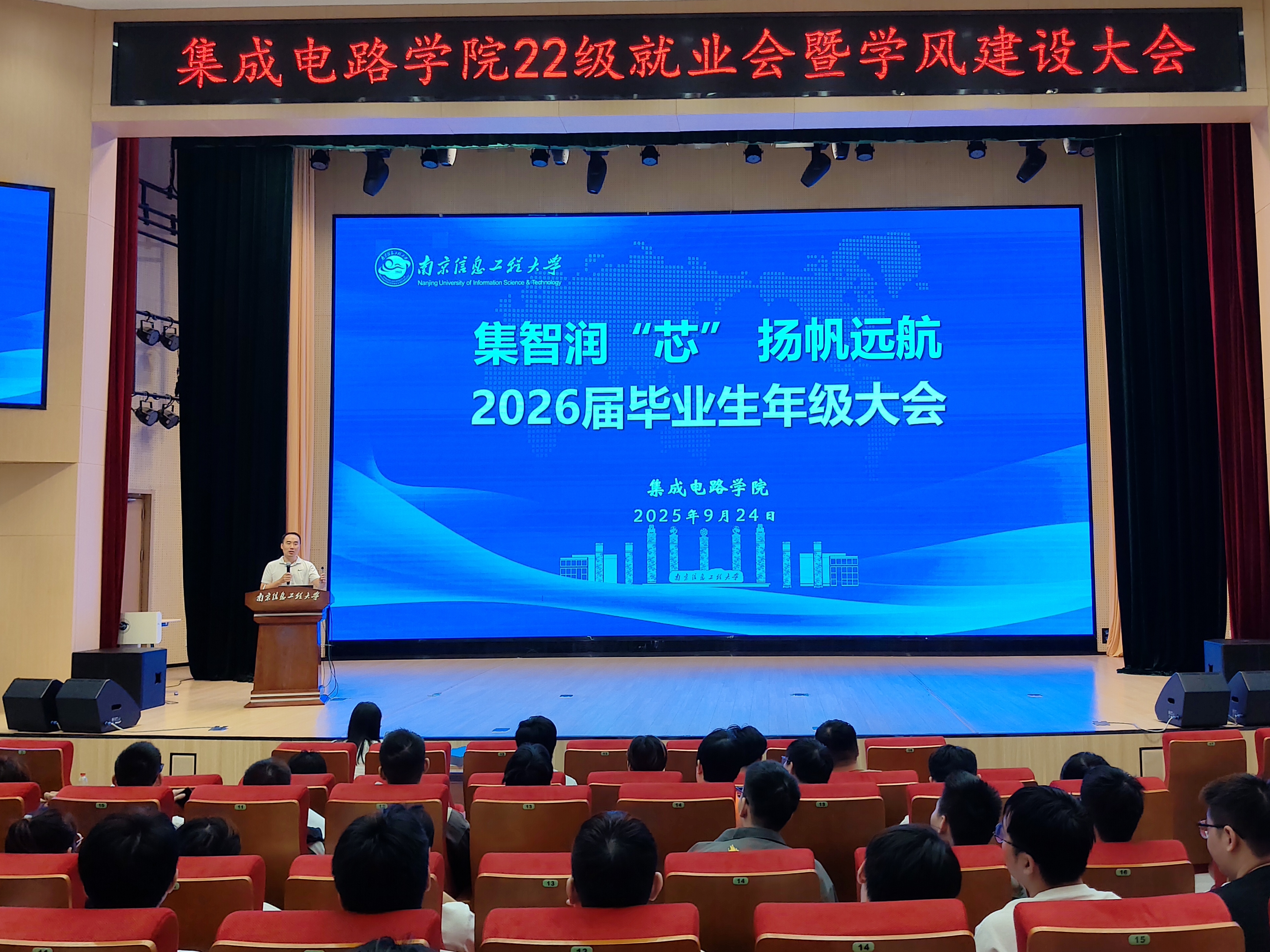 为帮助2026届毕业生明确毕业要求、厘清就业去向,为学生送上“一站式”毕业就业指导,9月24日上午,集成电路学院召开2026届毕业生年级大会暨学风建设大会。毕业班辅导员金红老师、院长助理吴礼福教授及全体毕业生参会。