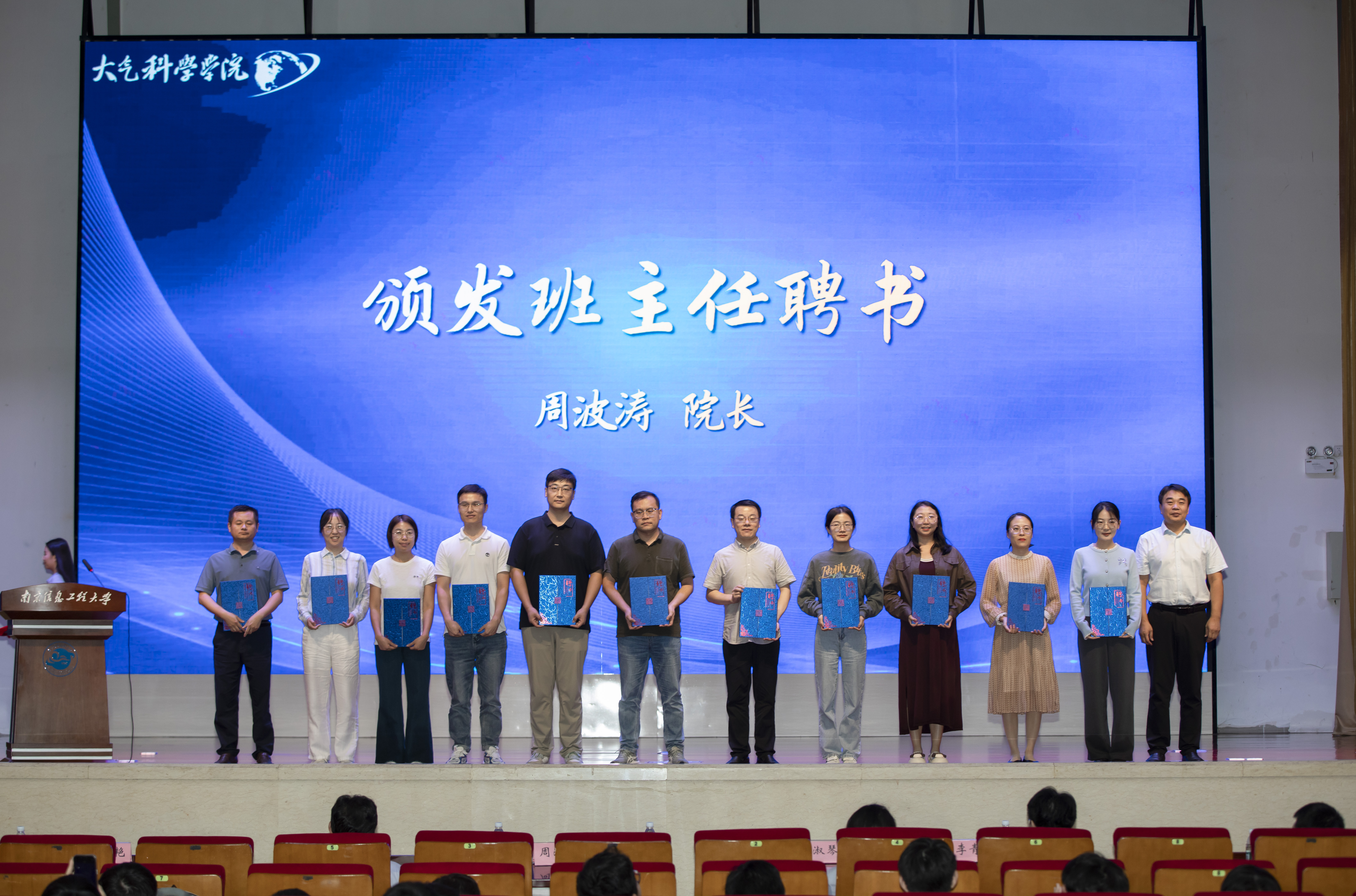随后,院长周波涛为2023级、2024级班主任老师们颁发聘书,院党委书记周淑琴为2024级学生副班主任代表颁发聘书。本科生专场中,2024级班主任代表高旗老师发言,她结合自身求学和工作经历,与同学们分享了“健康”“学习”“品德”“团结”四个关键词,鼓励同学们关注身心健康,深耕专业技能,涵养良好品德,承担集体责任,期许大家在气象领域绽放光芒,为社会和国家贡献力量。研究生专场中,导师代表姚素香教授发言,她祝贺同学们开启研究生旅程,并提出三点建议:转变学习方式,聚焦“点”上深耕,在探索未知中学会发现与解决问题;借力导师,多主动交流,积蓄学术 “能量” 实现能力提升;保持身心健康,以持久耐力应对科研,并祝愿新生成果丰硕,在学术舞台出彩。