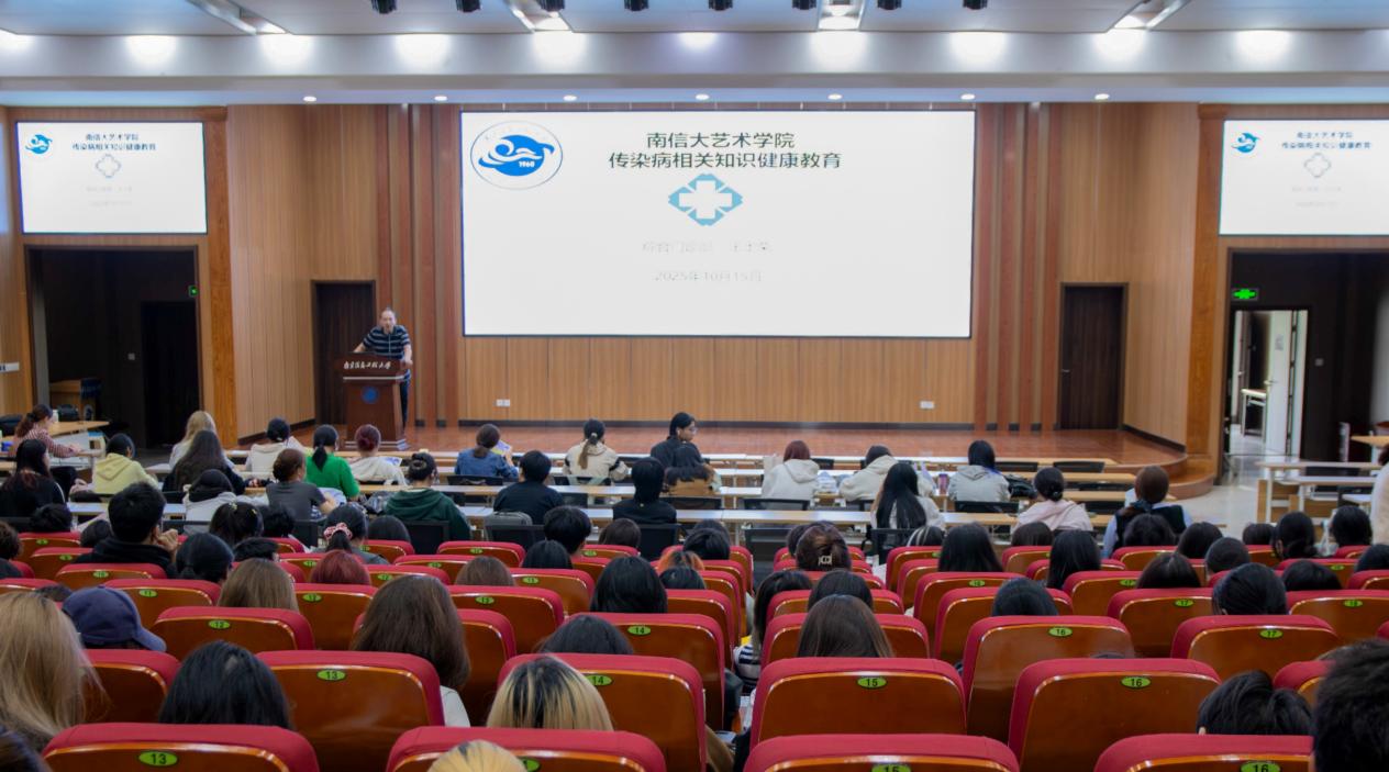为进一步提升新生安全意识、守护身心健康,艺术学院于10月15日在滨江楼报告厅开展传染病相关知识健康教育活动。本次活动由学校综合门诊部主任、副主任医师王士荣主讲,学院学办主任关颖婧,辅导员赵雅仪及全体2025级全体新生共同参与。