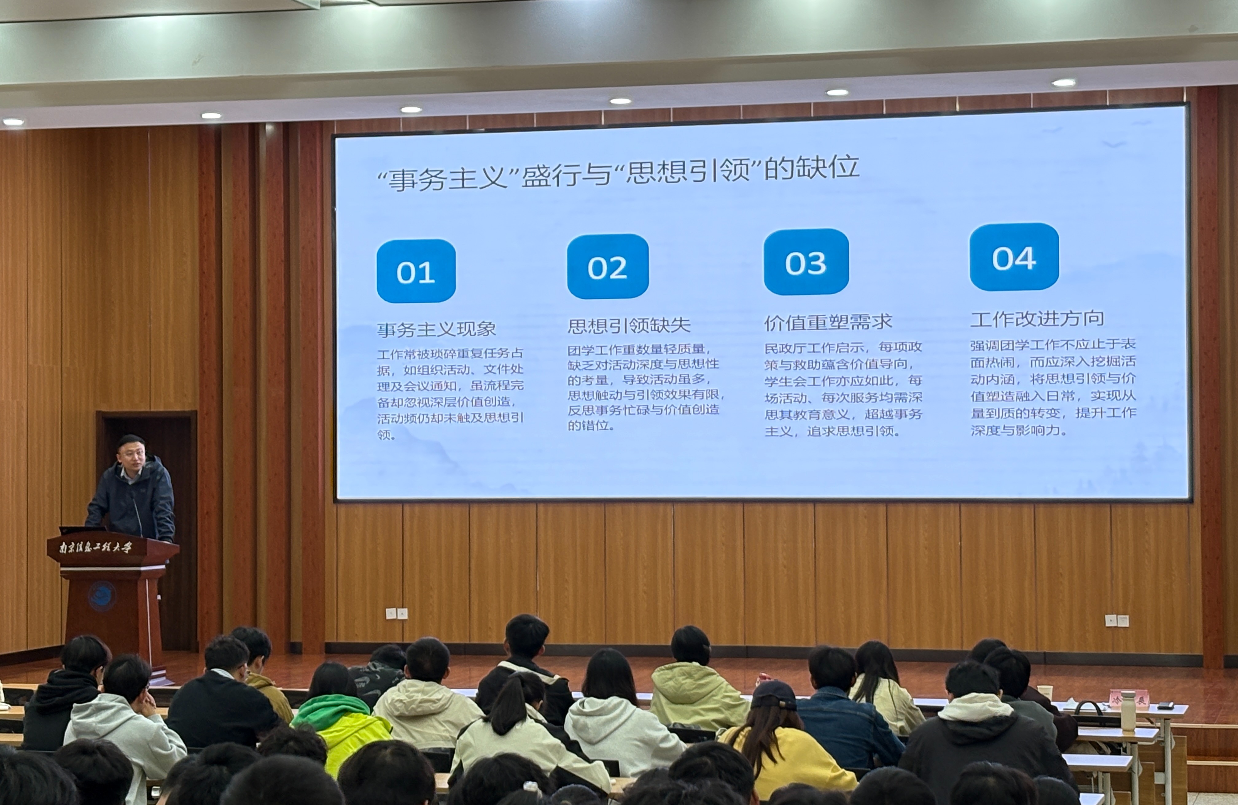 培训尾声,朱文镇作总结讲话。他希望全体学员认真吸收讲座内容,将所学所悟转化为推动工作的实际举措,在促进自身成长的同时,共同助力学院团学工作实现更高质量发展。