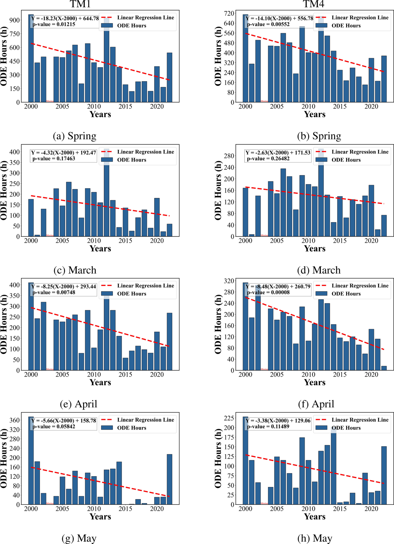 该研究首次从方法学层面系统论证了ODEs识别标准对该现象长期趋势结论的作用,并首次揭示了巴罗站春季ODEs的长期下降趋势。另外,该研究揭示的ODEs现象易发条件,也为相关的溴爆发现象及汞沉降风险的预测提供了参考。