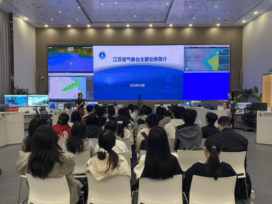 为贯彻《现代气象事业发展概论》课程中“气象行业实地考察与体验”模块的教学要求,增进学生对气象业务体系与实践应用的深入理解,10月18日与19日,大气科学学院高旗老师带领选修该课程的学生前往江苏省气象台开展参观交流活动。