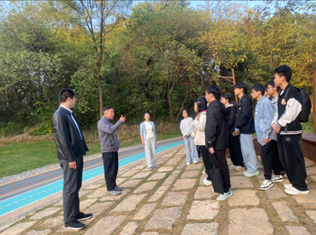 秋日的龙王山景色宜人,红叶与蓝天相映成趣。登山途中,师生们相互交流互相鼓励,欢声笑语不断。院关工委常务副主任黄锐在行走的过程中不时与学生们交谈,了解学生的基本情况关心他们在校的学习和生活,并分享登山心得:“人生如登山,每一步都充满挑战,但只要坚持,就能看到最美的风景。”登顶后,师生围成一圈,共话成长,他以“传承与创新”为主题寄语学生:“作为新时代青年,既要传承中华民族的传统美德,也要勇于创新,在专业领域深耕细作,学有所成,成为有担当、有情怀的新时代青年。”院党委书记巨传友从专业前景和学生个人成长角度提出三点期望:一是坚定理想信念,将个人理想融入国家发展;二是锤炼过硬本领,以真才实学服务社会;三是涵养家国情怀,在奉献中实现人生价值。党委副书记方群则以家文化和勇敢追梦为主题,鼓励学生:“生活中难免遇到困难与挫折,但请记住,家庭和学院永远是你们的坚强后盾。无论前路如何,都要保持积极乐观向上的心态,勇敢追逐青春梦想。”