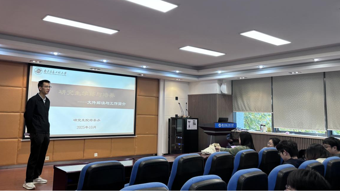 张慧老师围绕研究生学籍管理与培养工作进行了细致解读。她系统介绍了培养方案制定、课程学习要求、学分认定、中期考核以及学籍异动处理等关键环节,结合具体案例对常见问题和注意事项作了深入浅出的说明。张老师强调,同学们应尽早熟悉培养流程,科学规划学习进度,主动与导师沟通,确保各阶段培养任务高质量完成。