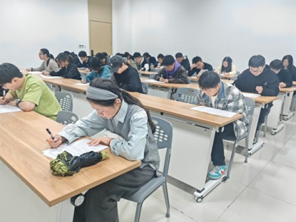 比赛当天,参赛学子早早抵达考场,有序签到、领取试卷,在工作人员的引导下严格遵守考场纪律,沉着答题。考场上,大家用扎实的知识储备和严谨的答题态度,展现出青年学子对党的理论知识的深刻理解与坚定信仰。答题过程中,工作人员全程监考,确保比赛公平、公正、公开,营造了严肃有序的竞赛氛围。