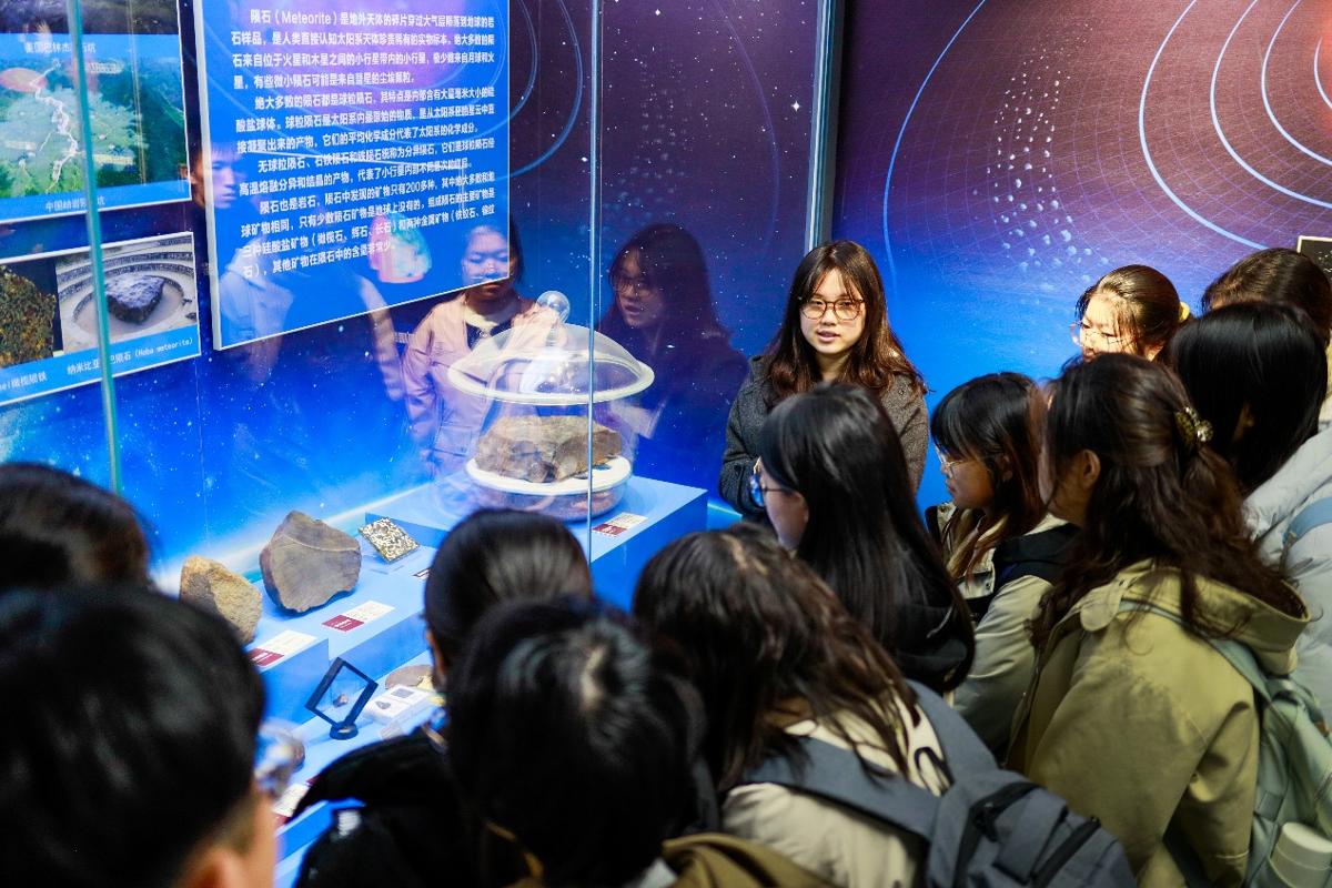 随后,同学们参观了地质地球所所史馆和博物馆。在所史馆,同学们回顾了研究所的光辉历史,从李四光、赵九章等前辈的创所历程,到了解研究所在“两弹一星”工程和希夏邦马峰科考等事件中的卓越贡献。在博物馆,大家观赏了珍贵的馆藏,包括形态各异的陨石、来自白云鄂博的稀土矿石、海百合等古生物化石,并瞻仰了见证中美“乒乓外交”历史的镇馆之宝——阿波罗11号月壤样品。