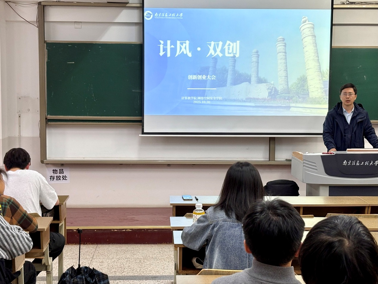 10月30日上午,由计算机学院、网络空间安全学院科学与技术协会主办的“计风·双创”系列活动之创新创业大会在滨江楼BN304成功举行,学院党委副书记、副院长朱文镇、阿里巴巴P8级、中软国际高级技术总监李卫名及全院双创委员参会。本次活动集优秀学生经验分享与专家技术讲座于一体,旨在全面激发学生的创新精神与创业热情,深化对创新创业实践的理解,为学院大创及其他科创项目的深入开展营造积极氛围、奠定坚实基础。