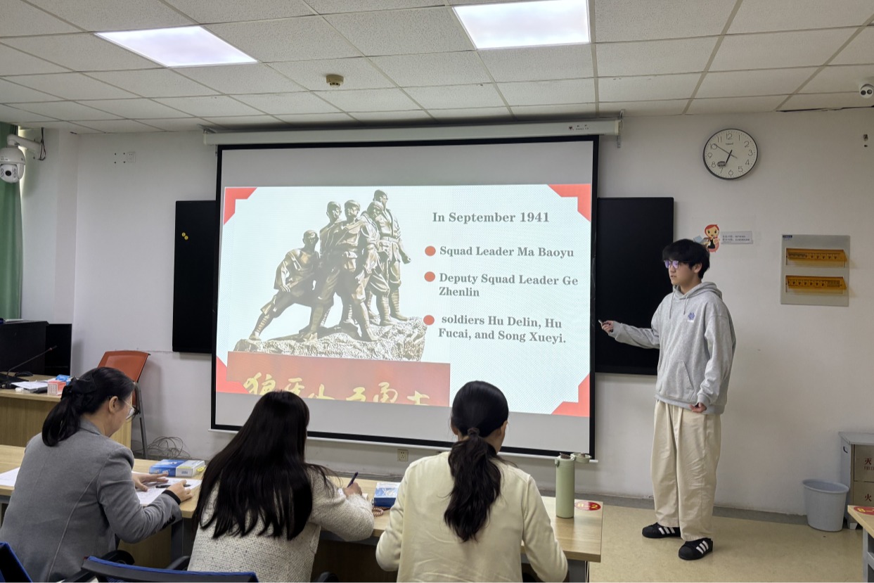 此次“用英语讲抗战故事”主题党日活动的成功举办,实现了思政教育与语言教学的有机融合。它既为学生们搭建了展示英语能力与文化素养的优质平台,让红色故事成为锤炼语言、滋养心灵的生动教材;也为教师们的思政教学提供了鲜活素材与创新思路,推动了“课程思政”与主题党日活动的深度结合。