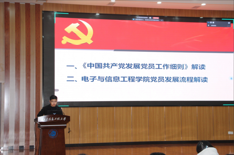 胡志红深入解读《中国共产党发展党员工作细则》。他结合电子与信息工程学院党员发展制度文件,详细说明学生党员发展工作的原则、流程及要求,勉励入党积极分子努力在学习生活工作中争当表率。交流分享中,党校学生联合会宣讲队以“初心不改 信仰领航”为主题开展宣讲。他们讲述了周恩来、袁咨桐、许包野等革命先辈的英勇事迹,生动展现先辈们为民族解放、人民幸福舍生忘死的热忱初心与大无畏的牺牲精神,激励学员们以先辈为镜,锤炼担当品格、永葆进取锐气,始终不忘初心、勇毅前行。