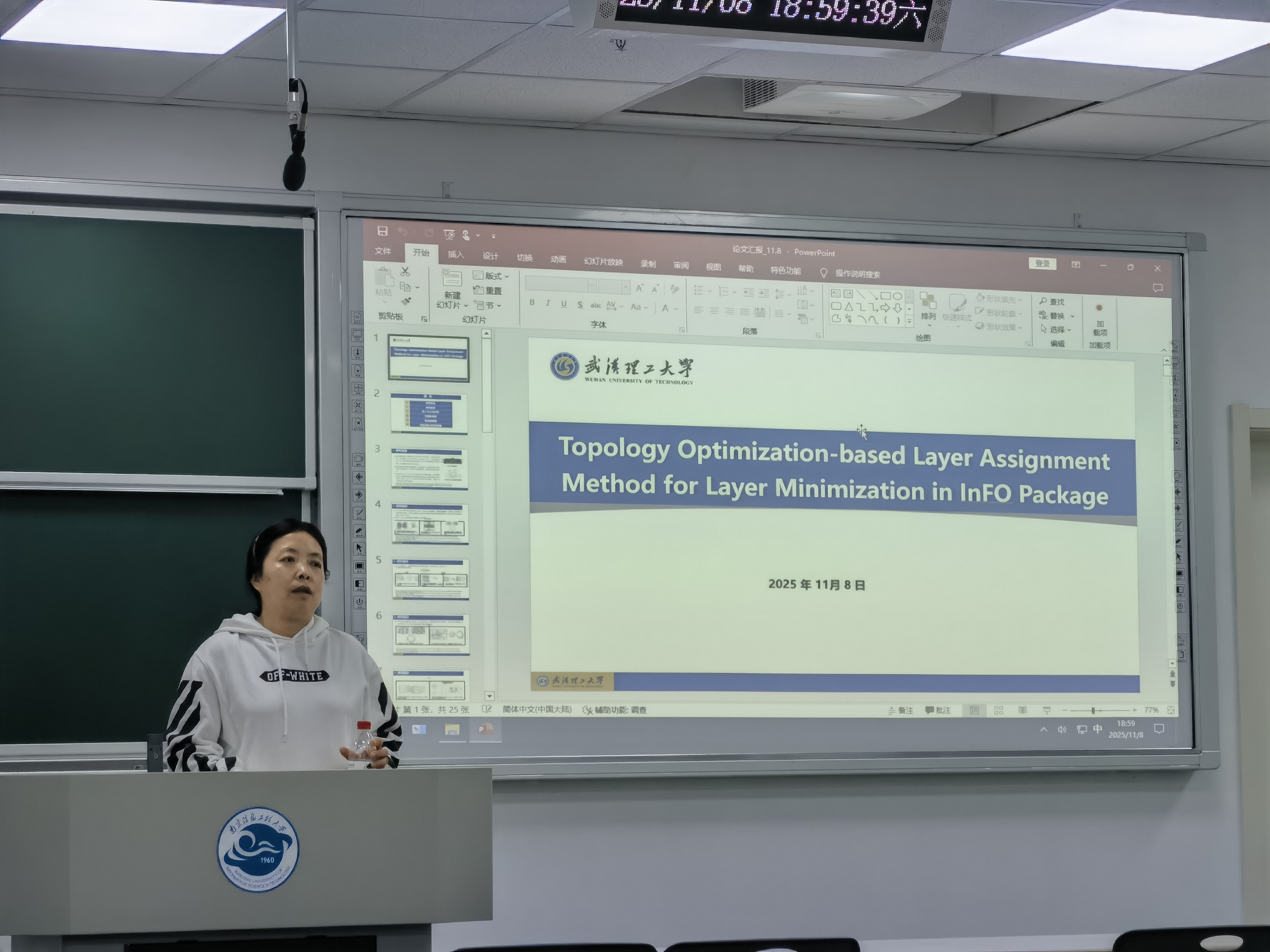 11月8日,软件学院举办第六期“芯咖啡”技术沙龙系列讲座。本期沙龙特邀武汉理工大学信息工程学院华为云合作专家吴皓莹,以“基于拓扑优化的扇出型晶圆级封装层分配方法研究”为题,为现场师生带来了一场深入浅出的前沿技术报告。讲座吸引了众多学生积极参与,现场气氛热烈。