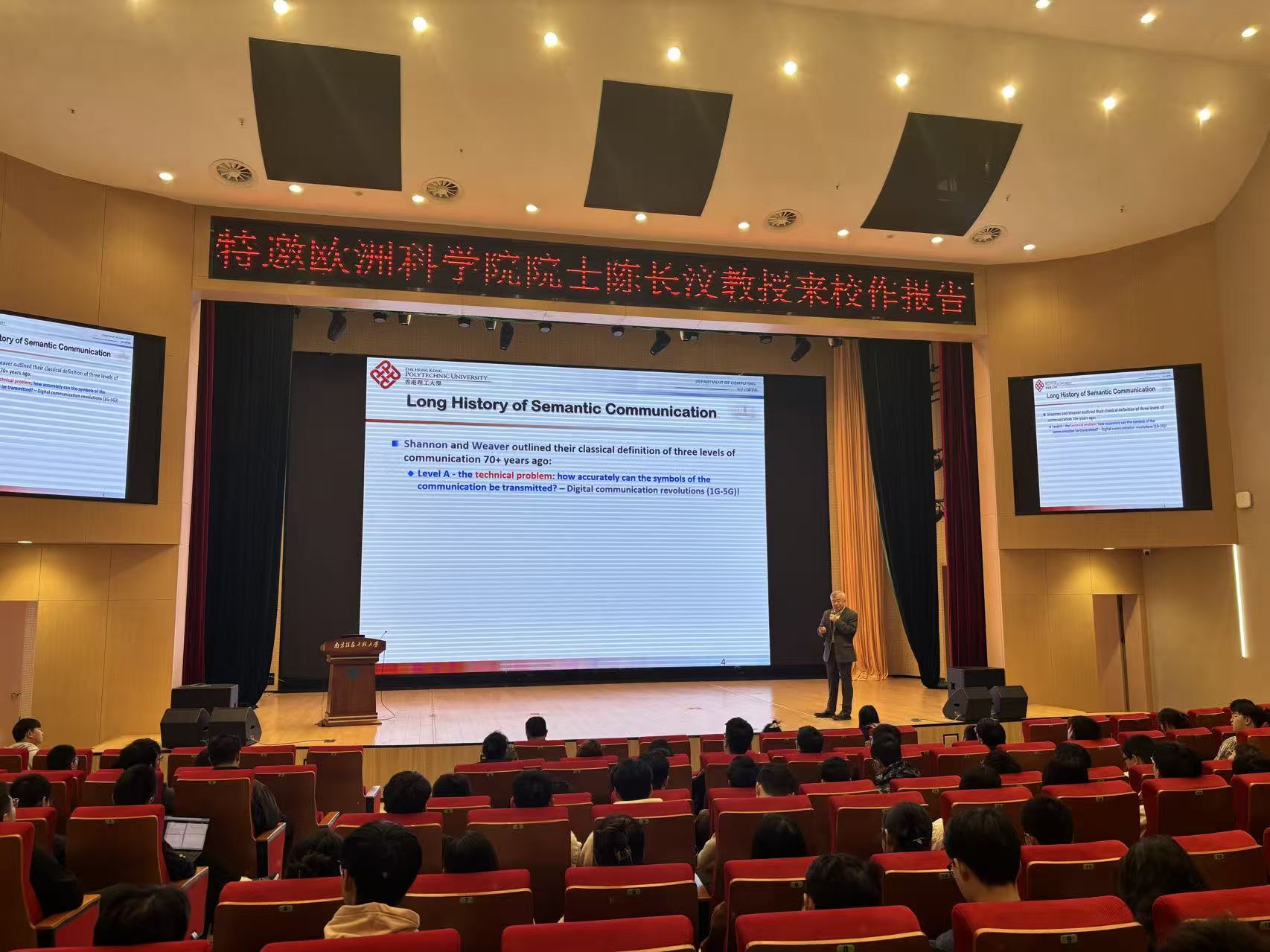 11月7日上午,欧洲科学院院士、IEEE Fellow、SPIE Fellow、香港理工大学视觉计算讲座教授陈长汶应邀来校,在临江楼D区报告厅为电子信息工程学院师生带来了一场题为《从当代视觉计算视角探索6G语义通信》的高水平学术报告。报告由电子与信息工程学院副院长刘光杰教授主持,200余名教师、研究生及本科生参加讲座。