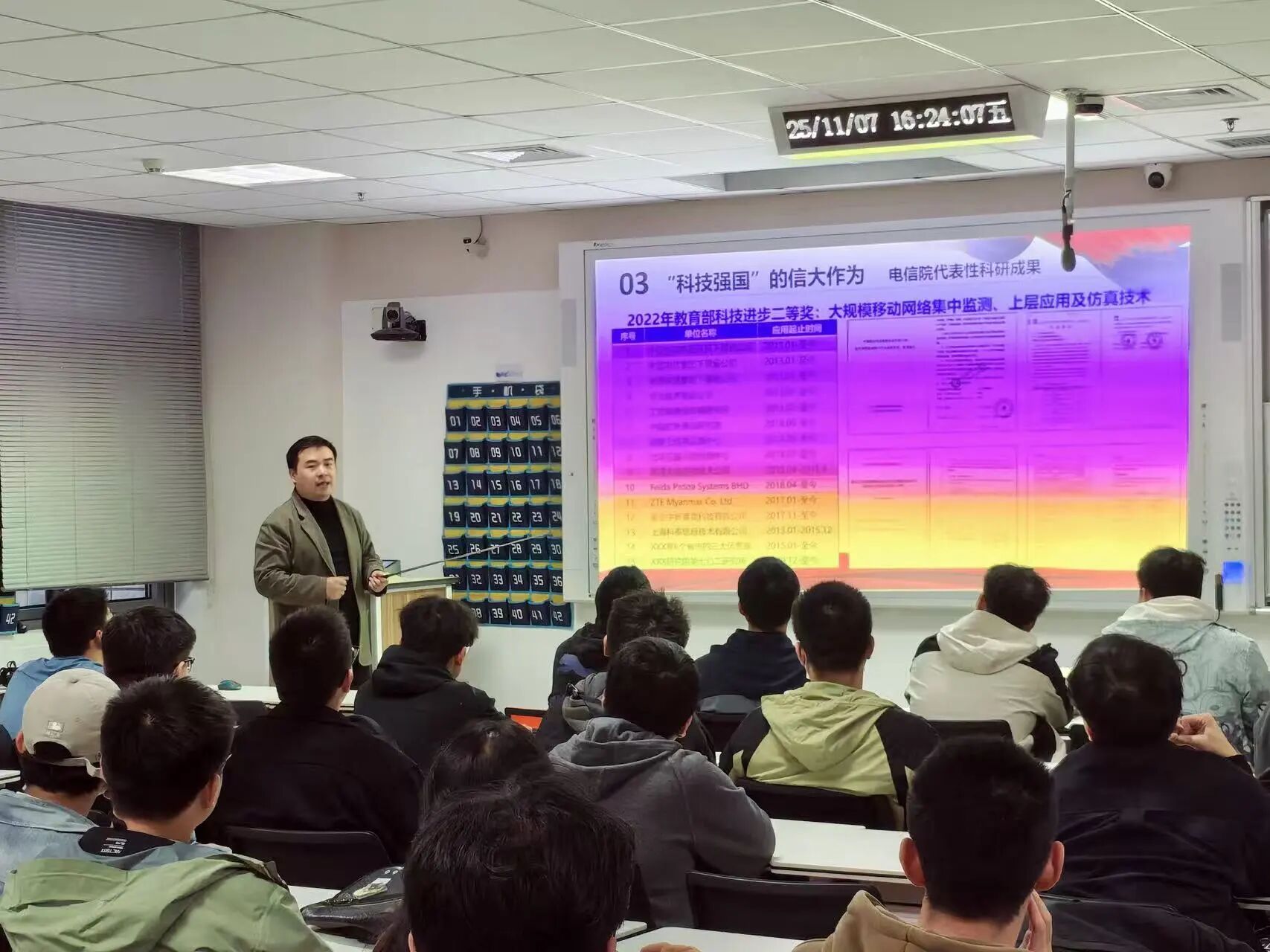 为着力提升团员青年的思想政治素养,引导其明晰在新时代肩负的责任与使命,近日,电子与信息工程学院在临江楼B509举办“新时代青年在科技强国中的使命担当”主题团课培训。本次培训由电信院分团委书记祁雪峰主讲,各年级团员发展对象齐聚一堂,共同学习新时代北斗精神的核心内核,回顾科技强国的历史践行,引导青年深刻理解科技创新的时代意义,坚定投身科技报国的理想信念。