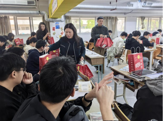 慰问活动中,电信院为考研学子准备了寓意深长的“考研加油包”,内含定制文具套装、抽纸等实用物资。这份慰问品寄托着学院对学子们的殷切期望和美好祝福,希望同学们在最后备考阶段保持身心健康,以最佳状态迎接挑战。收到慰问品的同学们纷纷表示,这份温暖而用心的礼物不仅缓解了备考压力,更让他们感受到学院大家庭的浓浓温情。