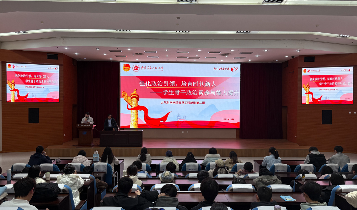 11月19日晚,大气院于气象楼一楼报告厅举办第二期“青马工程”培训暨信仰公开课,旨在强化政治引领,提升学生骨干的政治素养与综合能力。本次培训由学院团委副书记董祥如主持,马克思主义学院许川川老师主讲,全体青马学员参与。