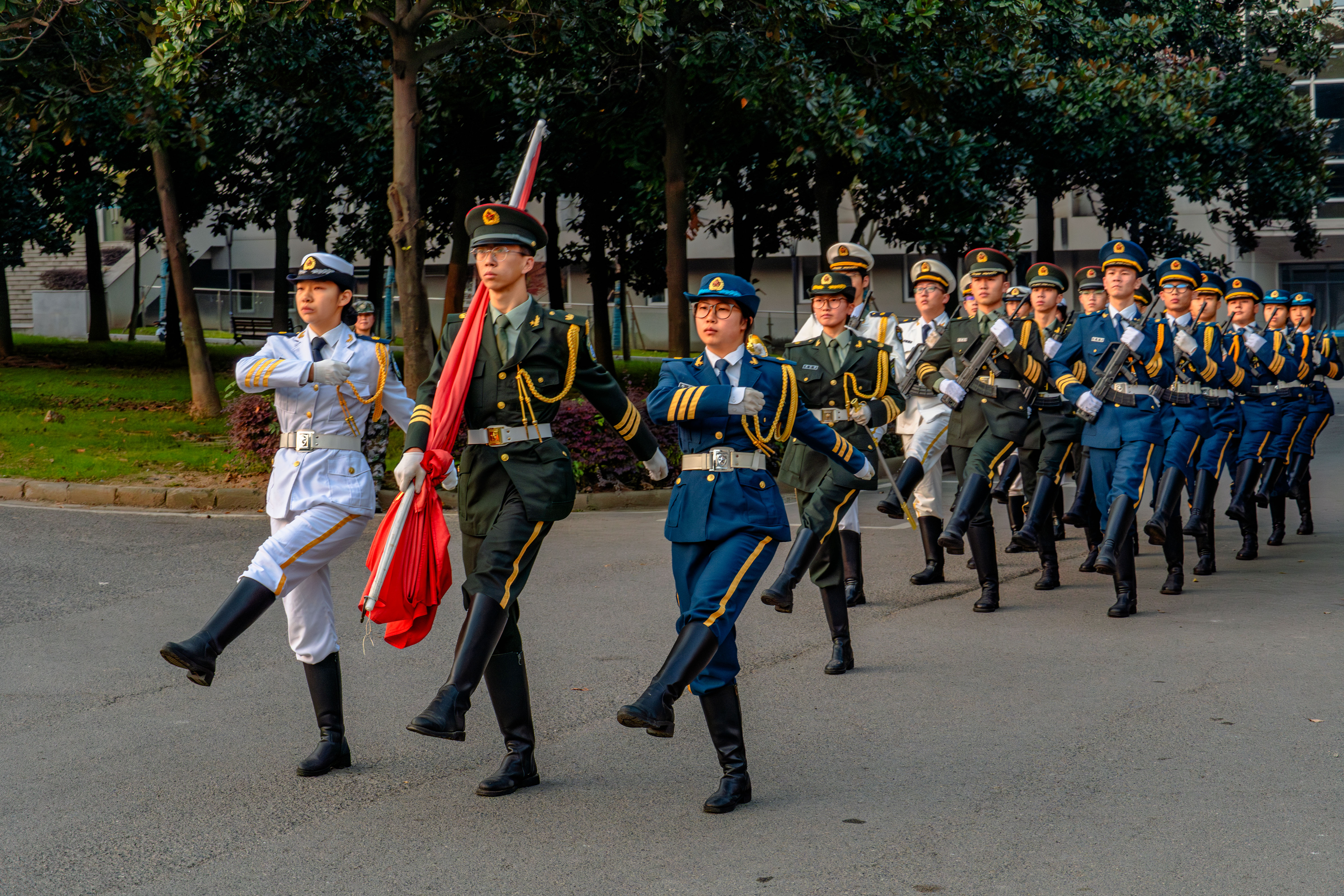 仪式现场庄严肃穆,伴随着激昂雄壮的《义勇军进行曲》,学院国旗班成员迈着铿锵有力的步伐,昂首挺胸护送国旗至旗杆下。在全体师生的注目下,五星红旗冉冉升起、迎风飘扬,在场人员均神情肃穆,面向国旗行注目礼,深切表达对祖国的崇敬与热爱之情。