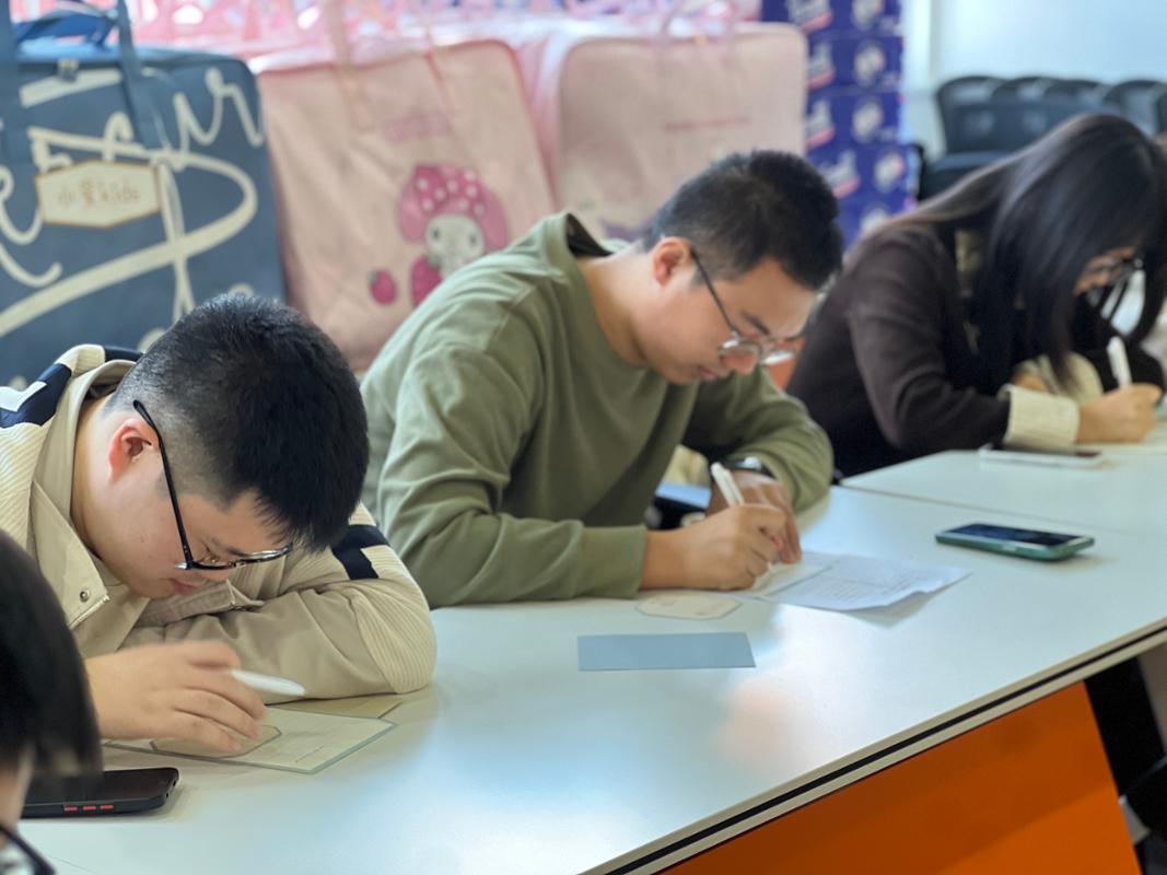 在随后的互动环节中,同学们手持学院准备的信纸与“暖心鼓励卡”,写下对一年后自己的期许,还为坐在自己右手边的同学送上真挚祝福。简单的互动让大家彼此传递了信任与鼓励,现场暖意融融。