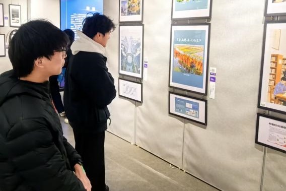 本次展览由江苏省教育厅主办,我校与南京林业大学联合承办,汇聚了从全省128所高校1585件参赛作品中遴选出的173件佳作,作品涵盖绘画、设计、影像、音乐四大类别,聚焦青春校园、数智创新、环保生态、传统文化四大主题,集中呈现了AI技术在艺术创造领域的创新应用。步入展厅,支部成员在一幅幅作品中感受着科技理性与人文精神的对话。一幅兼具传统水墨意境与数字科技质感的山水画作,巧妙融合算法逻辑与东方美学,展现了“技”与“道”的和谐共生;一组以生态守护为主题的设计作品,通过AI建模技术构建出未来绿色家园的立体图景,传递出强烈的环保理念;多组创意影像与音乐作品,则借助智能技术突破传统表达边界,带来沉浸式感官体验。参观过程中,成员们不时驻足凝望、低声交流,探讨AI技术在艺术创作领域的应用潜力,更结合自身专业背景,深入思考如何以科技之力赋能文化传承与创新,担当时代赋予的文化使命。