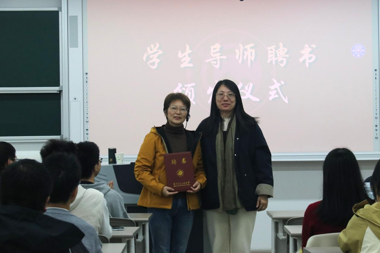交流提问环节,王顺凤耐心细致地解答同学们踊跃提出的各类问题,勉励同学们重视思维逻辑,掌握节奏,摸索自己的学习之道。讲座最后,朱建为王顺凤颁发学生导师聘书,并鼓励同学们与老师们双向奔赴,共悟学道教道。