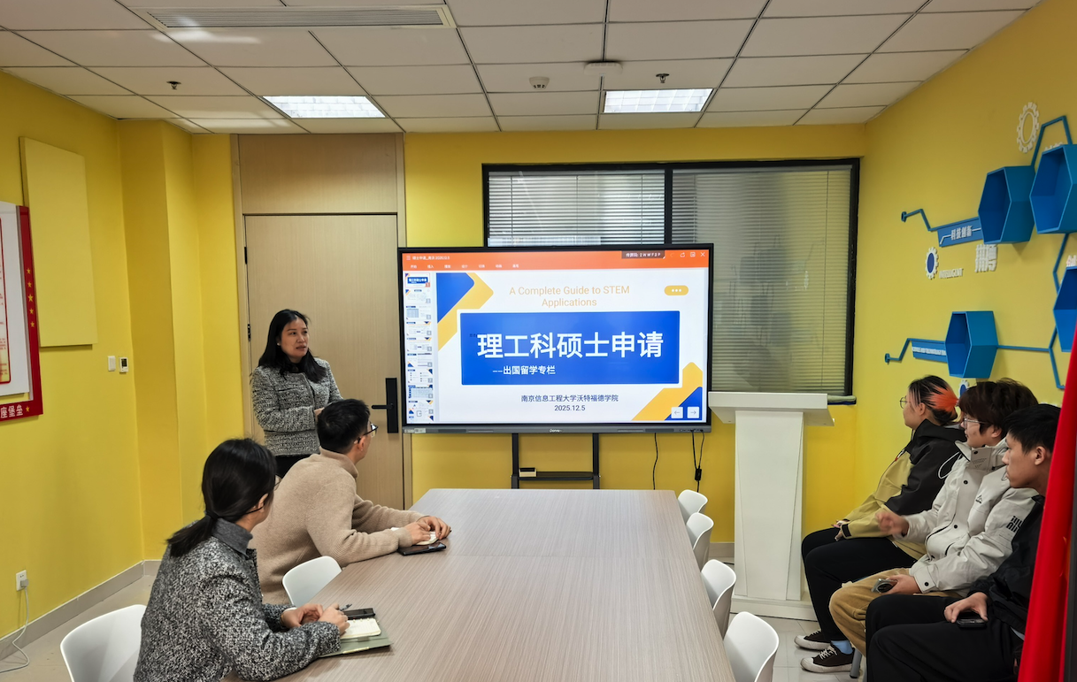 12月5日上午,沃特福德学院在临江楼B206教室举行了南沃留“升”机(第十七期)之留学申请全流程通关解析活动。该活动邀请了爱尔兰东南理工大学中国项目办公室经理周艳,为同学们详细解读理工科海外硕士留学申请的条件要求与注意事项。