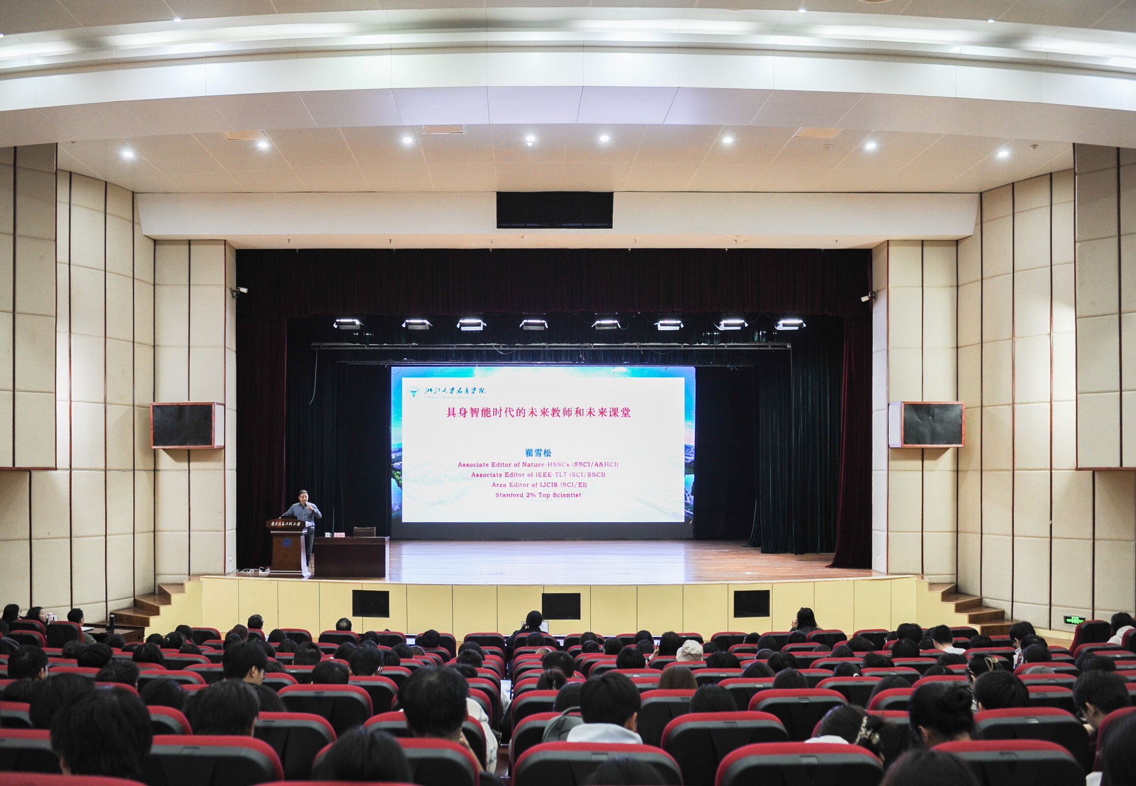 为精准把握人工智能教育应用新趋势,助力师范生与教师队伍构建未来教育核心素养。12月10日下午,教师教育学院在大学生活动中心二楼报告厅举办第40期“敬学讲堂”系列讲座。本次讲座特邀浙江大学教育学院特聘研究员翟雪松作题为“具身智能时代的未来教师与未来课堂”专题分享,讲座由学院院长杨作东主持。