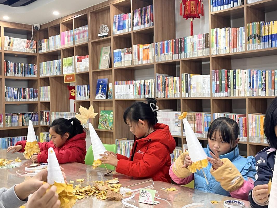 活动中,学院志愿者同学们通过图文并茂的讲解,介绍大雪节气后气温下降、霜雪频现的气候特点,并结合地球运动视频生动演示了地球公转与太阳直射点变化对昼夜长短的影响。孩子们在互动中理解了为何冬至是一年中“日照最短、黑夜最长”的日子,并对“为何近日点附近反而寒冷”展开了热烈讨论。志愿者就冬至吃饺子、汤圆等传统习俗展开介绍,将气象知识与民俗文化巧妙融合。随后志愿者带领孩子们诵读《数九歌》,从“一九二九不出手”到“九九加一九,耕牛遍地走”,帮助小朋友们记忆这段凝结古人观察智慧的节气歌谣。小朋友们不仅了解了冬季气候的阶段变化,也对中华优秀传统文化中的气象智慧有了更深体会。最后,小朋友们在志愿者指导下,将废旧泡沫箱裁成锥状,粘贴上落叶制作成精美的“黄金树”,从挑选叶片、设计造型到粘贴完成,孩子们专注投入,在指尖感受冬日的静谧与美好。