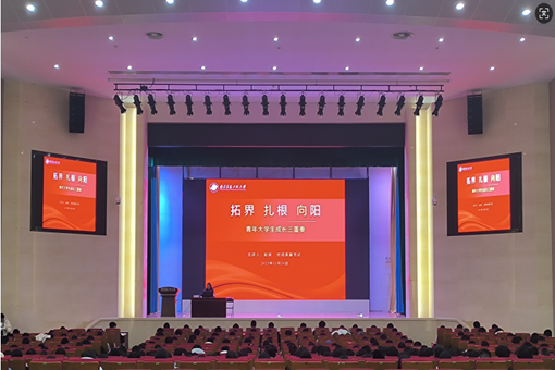 12月10日下午,管理工程学院在风云剧场举行新生初级党课暨“青马工程”培训,校团委副书记赵硕作《拓界 扎根 向阳:青年大学习成长三重奏》专题讲座,学院全体2025级新生和青马学员参加培训。