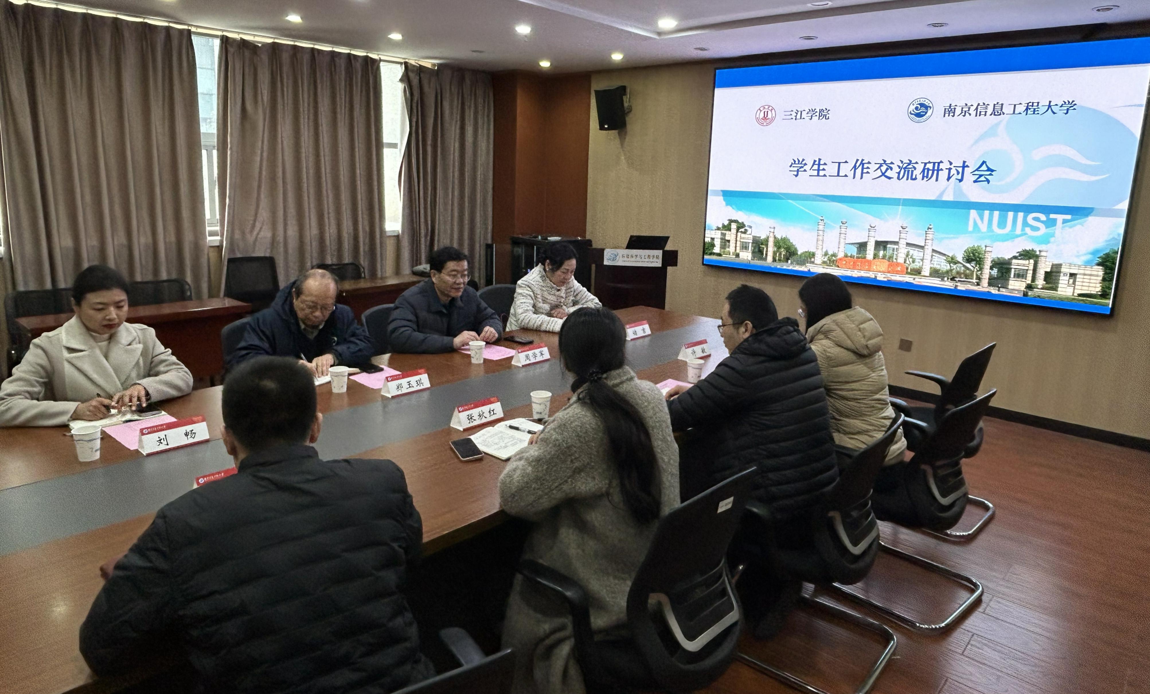 3月6日,三江学院学生发展与服务中心主任周学军,外国语学院党总支书记、院长郑玉琪,党总支副书记储吉,学办主任兼分团委书记刘畅一行受邀来到南京信息工程大学环境科学与工程学院开展学生工作研讨交流活动。我校学生工作处副处长张秋红,环科院党委书记屈家安,党委副书记兼副院长许敏,学办主任张龙华,辅导员许大炜参加此次研讨交流活动。